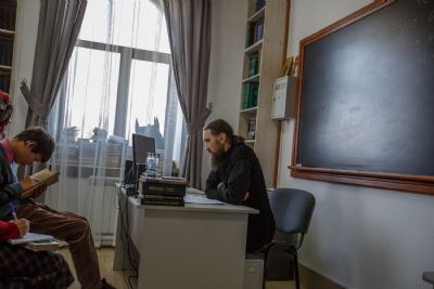После богослужения и монастырской трапезы паломники приняли участие в лекции настоятеля монастыря игумена Климента (Кривоносова), посвященной догматическому разбору ошибочности католического учения о Филиокве. После лекции у прихожан была возможность побеседовать с отцом Климентом. Побывали паломники и в иконописной мастерской монастыря.