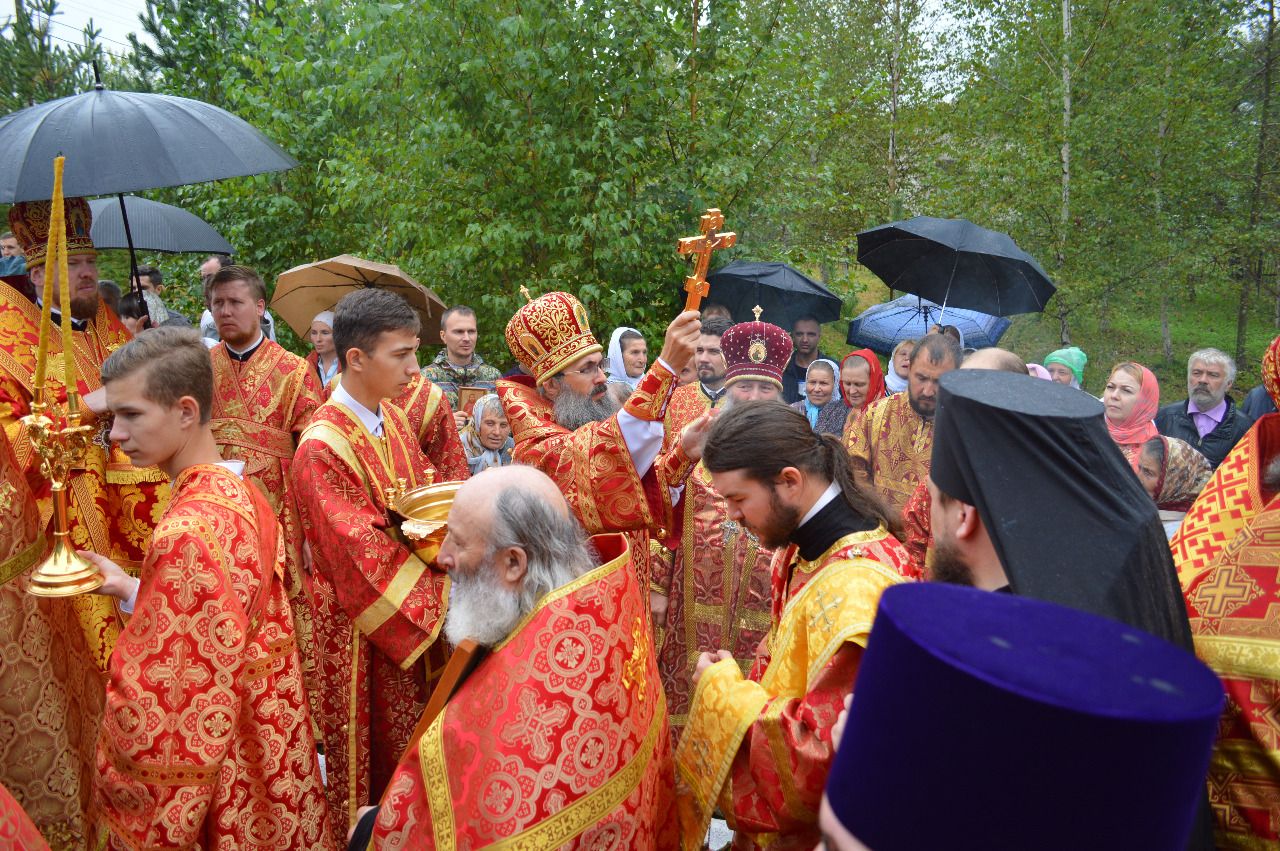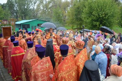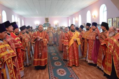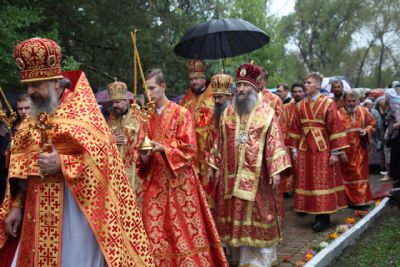 Праздничное богослужение завершилось крестным ходом вокруг храма с иконой священномученика Андрея.