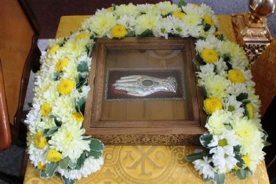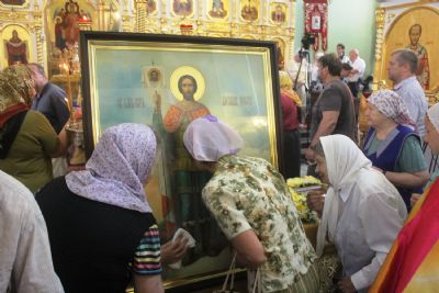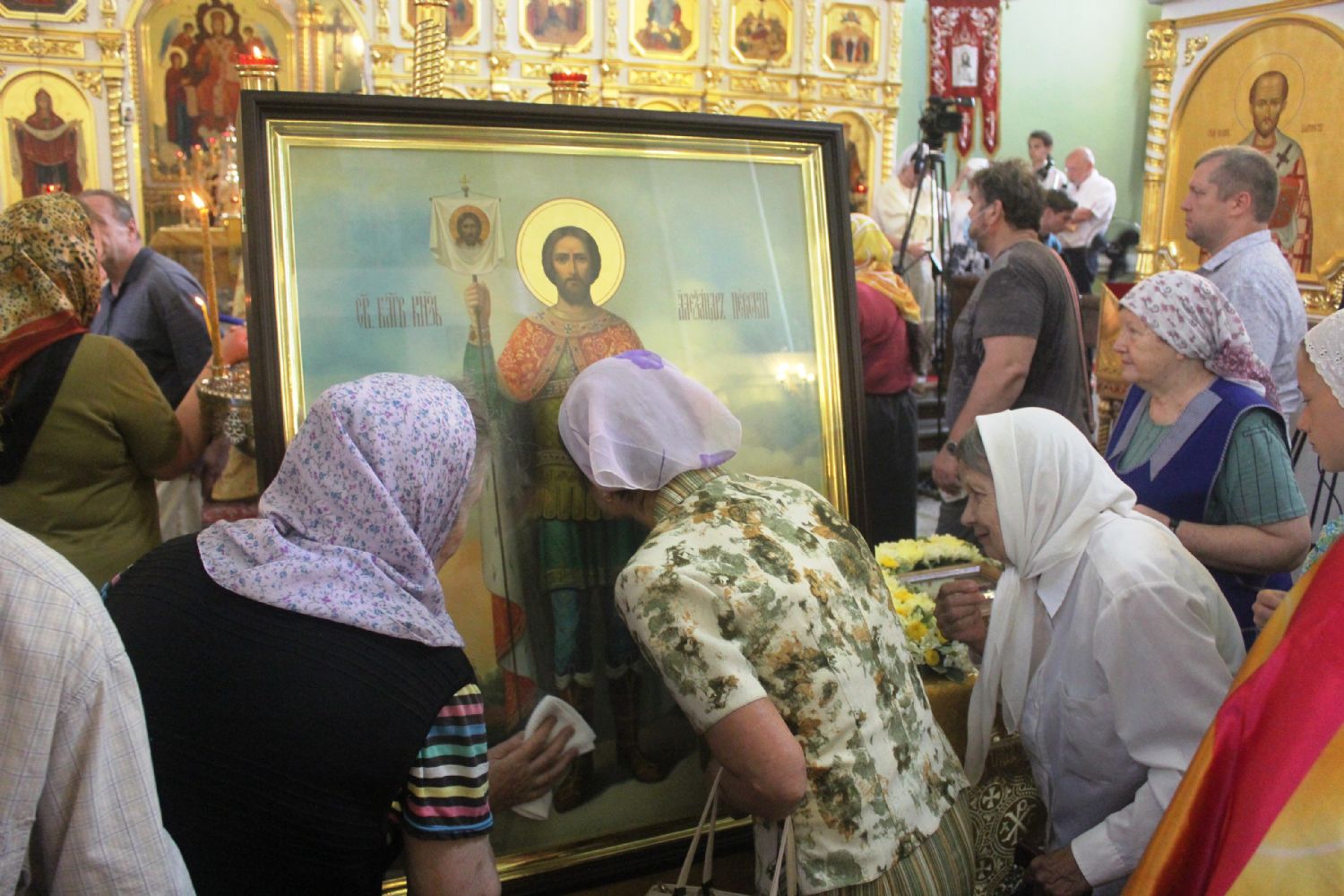 После занесения святынь в храм перед ними был совершен молебен святому благоверному князю Александру Невскому.