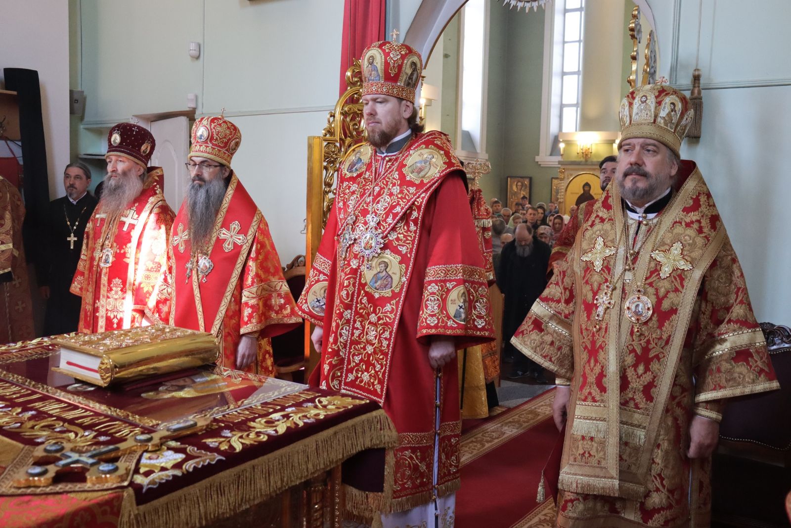 Владивосток. 15 мая 2022 года, в Неделю 4-ю по Пасхе, о расслабленном, и день празднования перенесения мощей благоверных князей Российских Бориса и Глеба, во Святом Крещении Романа и Давида, митрополит Владивостокский и Приморский Владимир в сослужении епископа Уссурийского Иннокентия, викария Владивостокской епархии, епископа Находкинского и Преображенского Николая, епископа Арсеньевского и Дальнегорского Гурия совершил Божественную литургию в Покровском соборе.