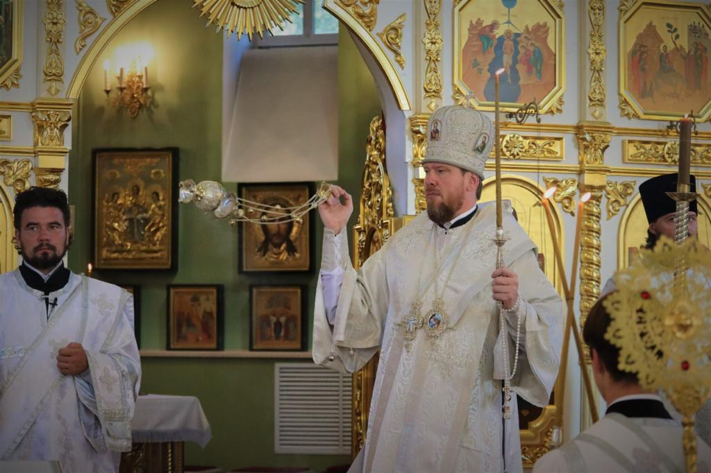 Его Высокопреосвященству сослужили: ключарь собора иерей Владимир Плотников; иерей Максим Точуков; ответственный за организацию архиерейских богослужений иерей Дионисий Ищенко; клирик Петропавловской епархии иерей Владимир Миронов.