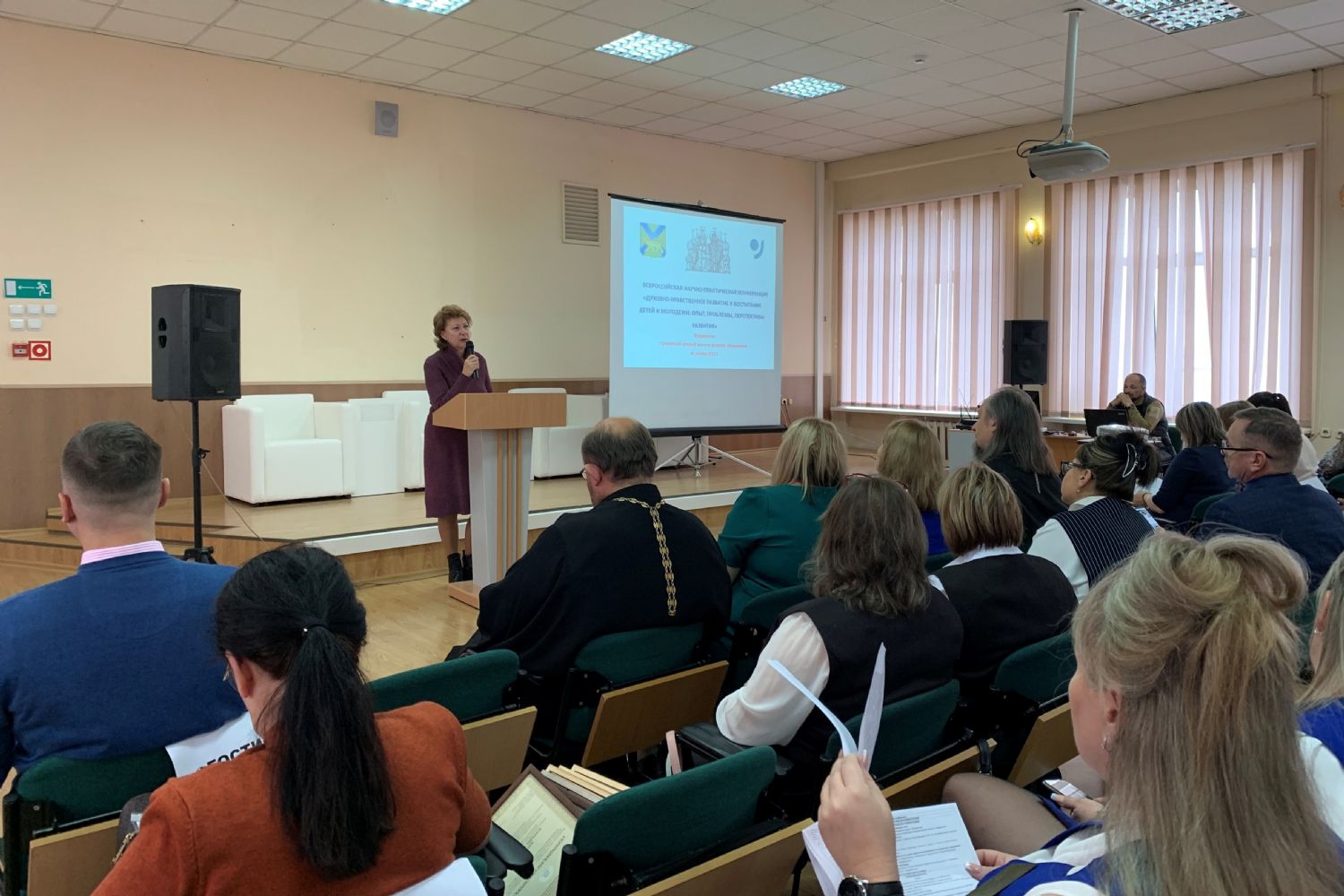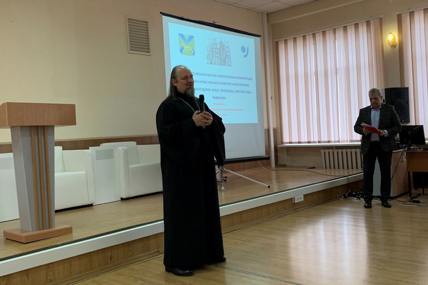 К педагогам, воспитателям, специалистам органов управления образования, представителям методических служб муниципальных районов и городских округов и другим участникам конференции с приветственным словом обратились Наталья Вячеславовна Василянская, заместитель министра образования Приморского края и протоиерей Ростислав Мороз, руководитель отдела религиозного образования и катехизации Владивостокской епархии.