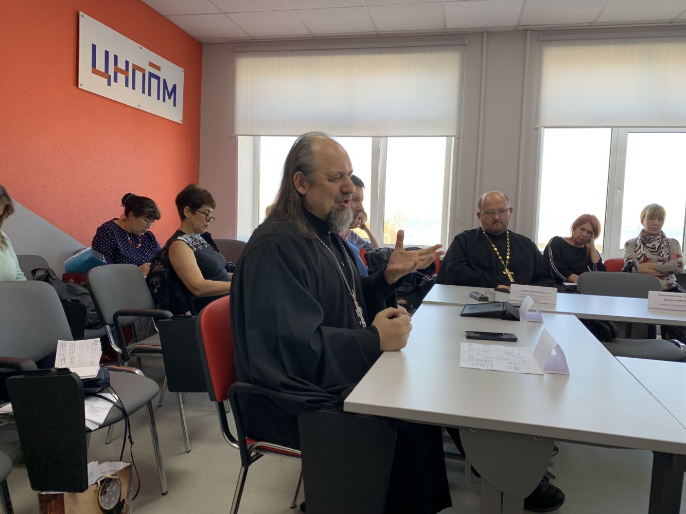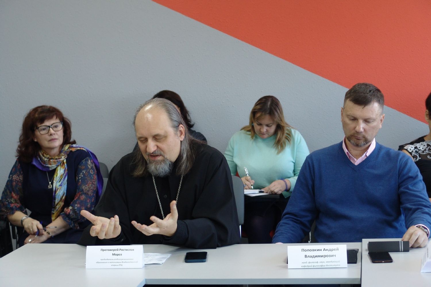 Модератором круглого стола выступил Александр Викторович Петрунько, кандидат педагогических наук, начальник отдела аналитической и проектной работы ГАУ ДПО ПК ИРО, экспертом Ольга Васильевна Титарова, главный специалист сектора воспитательной работы ЦУМР ГАУ ДПО ПК ИРО; спикерами: протоиерей Ростислав Мороз, иерей Роман Капитанюк, руководитель епархиального отдела образования Находкинской епархии, Андрей Владимирович Поповкин, кандидат философских наук, заведующий кафедрой философии ДВО РАН, Егор Вячеславович Романов, специалист управления образования Арсеньевского городского округа, Валерий Николаевич Афсатаров, воспитатель учебного курса ФГКУ «Уссурийское суворовское военное училище Министерства обороны Российской Федерации». Участниками круглого стола были специалисты органов управления образования и представители методических служб муниципальных районов и городских округов.