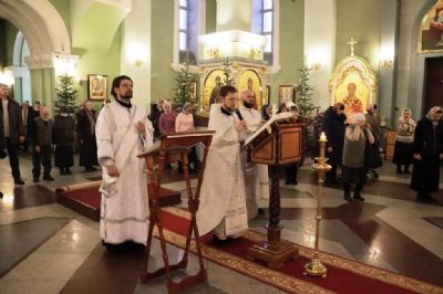 В навечерие Рождества Христова митрополит Владимир совершил богослужение в Покровском соборе