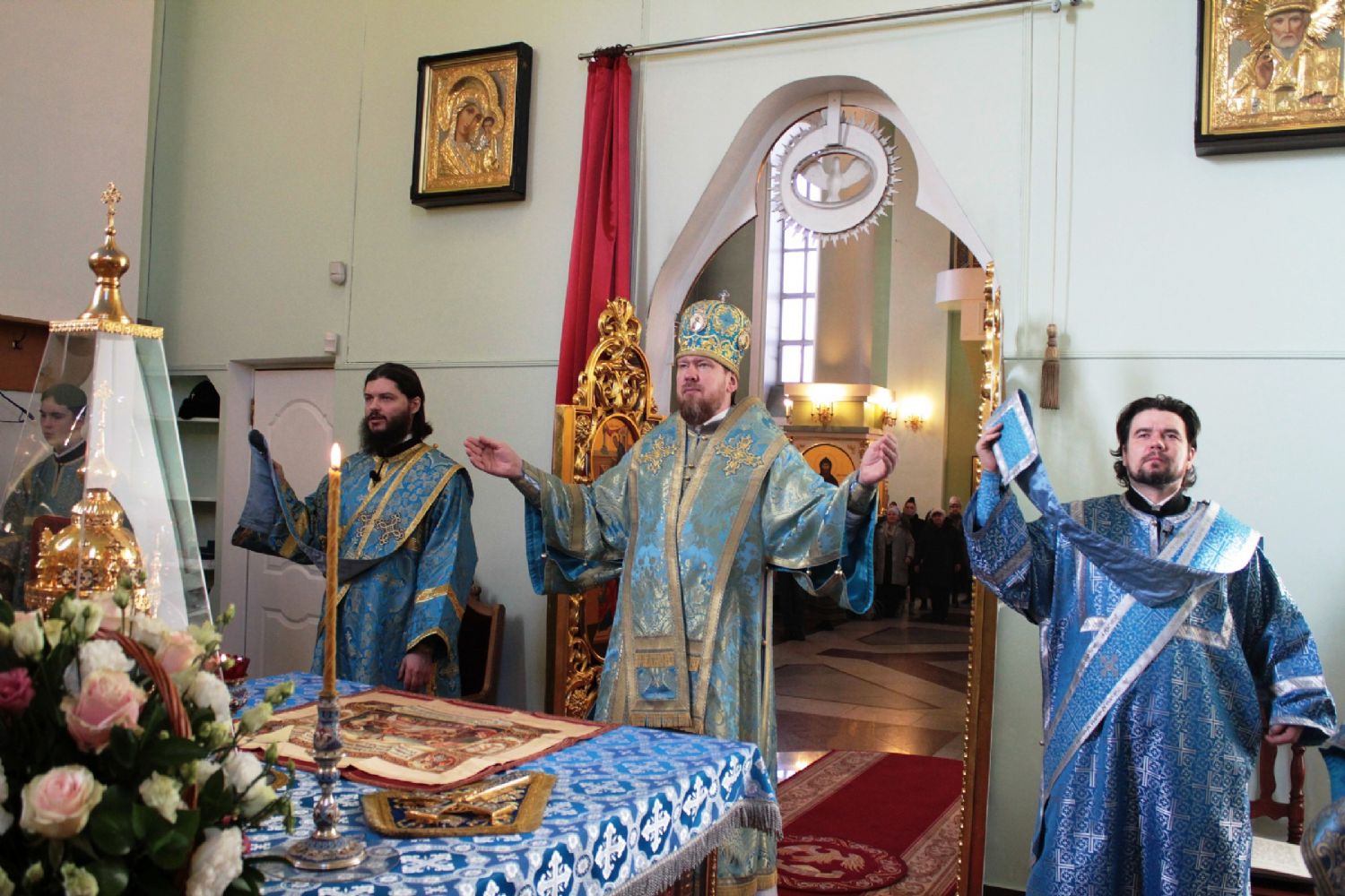 По отпусте литургии владыка Владимир возглавил славление празднику Сретения Господня и совершил чин освящения свечей.