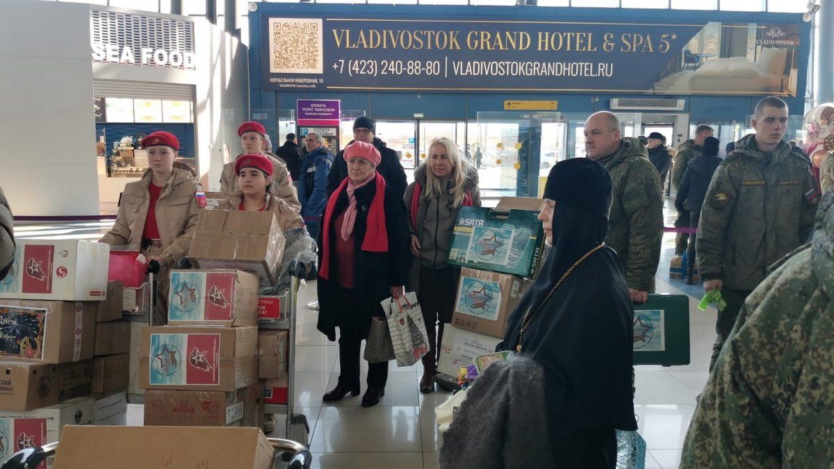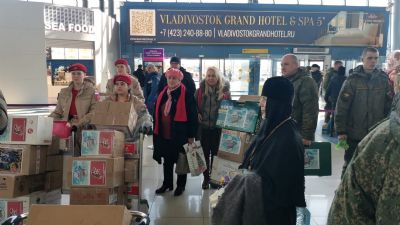 Игумения Феодосия (Байкова), настоятельница монастыря Казанской иконы Божьей Матери, рассказала о том, как насельницы монастыря совместно с жителями Раздольного собирали для приморских воинов, находящихся в зоне СВО, посылки: вязали носки, пекли пряники и мастерили блиндажные свечи. Для производства блиндажных свечей монастырь предоставил помещения и пчелиный воск из монастырской пасеки, а местный консервный завод пожертвовал банки и картон.