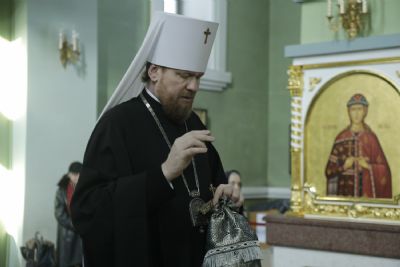 По завершении богослужения митрополит Владимир поблагодарил верующих за молитвы и преподал архипастырское благословение.