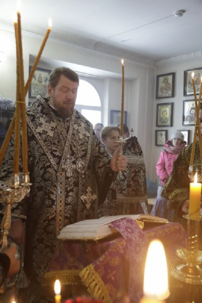 Настоятель храма иерей Александр Казанцев поблагодарил владыку за архипастырский визит и преподнес ему букет цветов.