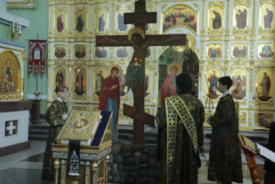 Затем было совершено поклонение Честному и Животворящему Кресту Господню.
