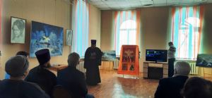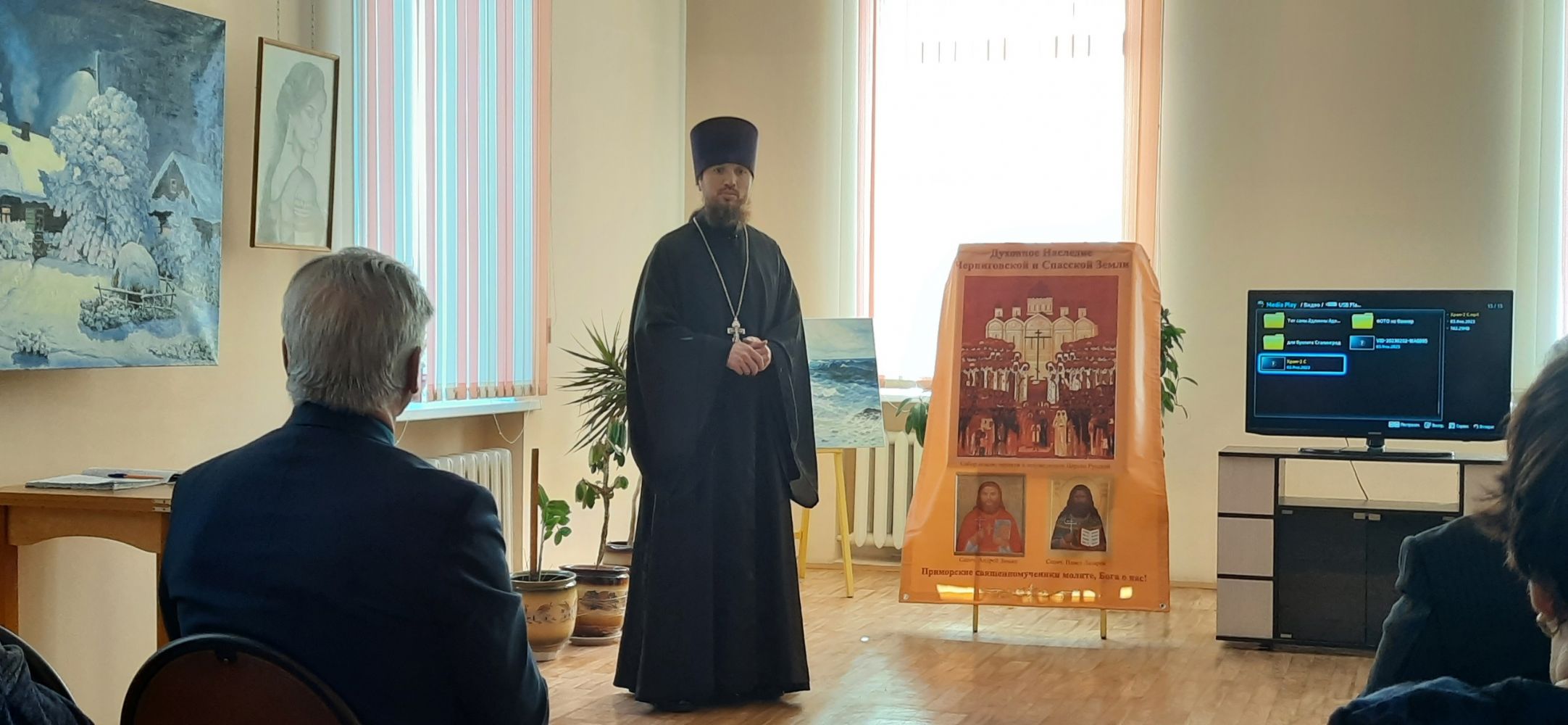 В рамках фотовыставки прошло мероприятие «Духовное наследие Черниговской и Спасской земли». Благочинный Спасского благочиния протоиерей Владимир Капитанюк рассказал о священномученике Спасской земли - Павле Лазареве, убиенном за веру в с. Никитовка в 1919г. Настоятель храма Рождества Пресвятой Богородицы с. Черниговка, иерей Максим Самохвалов, поведал слушателям об Андрее Зимине, который, будучи настоятелем храма в с. Черниговка, тоже принял мученический крест вместе с семьёй в 1920г. Состоялся просмотр фильма о священномученике.
