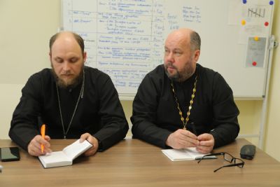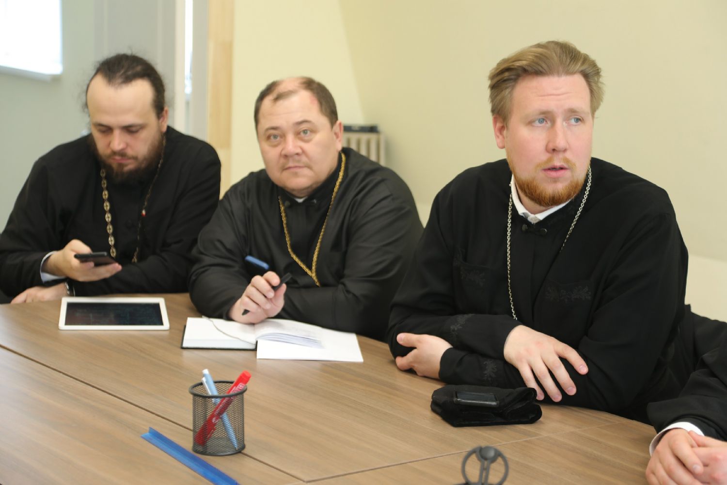 В обсуждении приняли участие секретарь Владивостокской епархии протоиерей Игорь Талько; благочинный I Владивостокского благочиния, исполняющий обязанности благочинного II Владивостокского благочиния протоиерей Сергий Шуталев; благочинный монастырей Владивостокской епархии, наместник Свято-Серафимовского мужского монастыря игумен Климент (Кривоносов); руководитель отдела Владивостокской епархии по взаимодействию с правоохранительными органами и МЧС иерей Димитрий Брызгалов; руководитель отдела Владивостокской епархии по взаимодействию с Вооруженными Силами иерей Даниил Есаков; ключарь Покровского собора иерей Владимир Плотников; заместитель благочинного I Владивостокского благочиния иерей Михаил Тутаев; ответственный за организацию архиерейских богослужений иерей Дионисий Ищенко; регент хора храма святителя Спиридона Тримифунтского Ольга Григорьева.