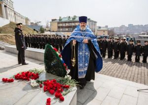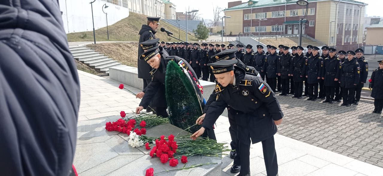 В Тихоокеанском высшем военно-морском училище имени С.О.Макарова в памятных мероприятиях приняли участие помощник начальника училища по работе с верующими военнослужащими, настоятель храма святого праведного воина, адмирала Российского флота Феодора Ушакова иерей Александр Жилин, председатель Владивостокского морского собрания, выпускник ТОВВМУ 1975 года, адмирал в отставке К. Сиденко, председатель Совета моряков-подводников Тихоокеанского флота, выпускник училища 1971 года, вице-адмирал А. Конев и председатель Совета ветеранов 51-го отряда подводного плавания, выпускник училища 1970 года, капитан 1 ранга Т. Москаленко ветераны ВМФ, командование ТОВВМУ и Владивостокского филиала НВМУ, юнги военно-патриотического клуба «Юный патриот Родины», а также офицеры одного из соединений подводных лодок Тихоокеанского флота, курсанты и нахимовцы.