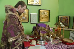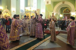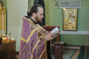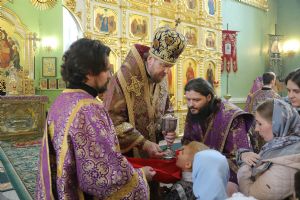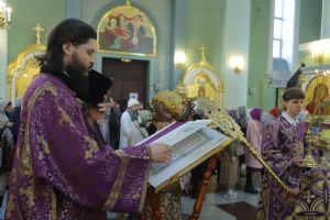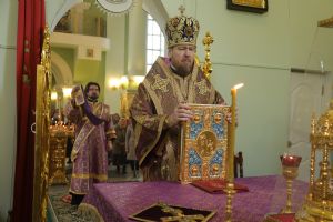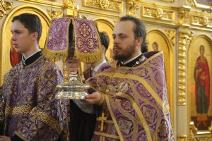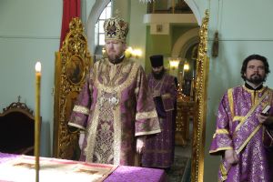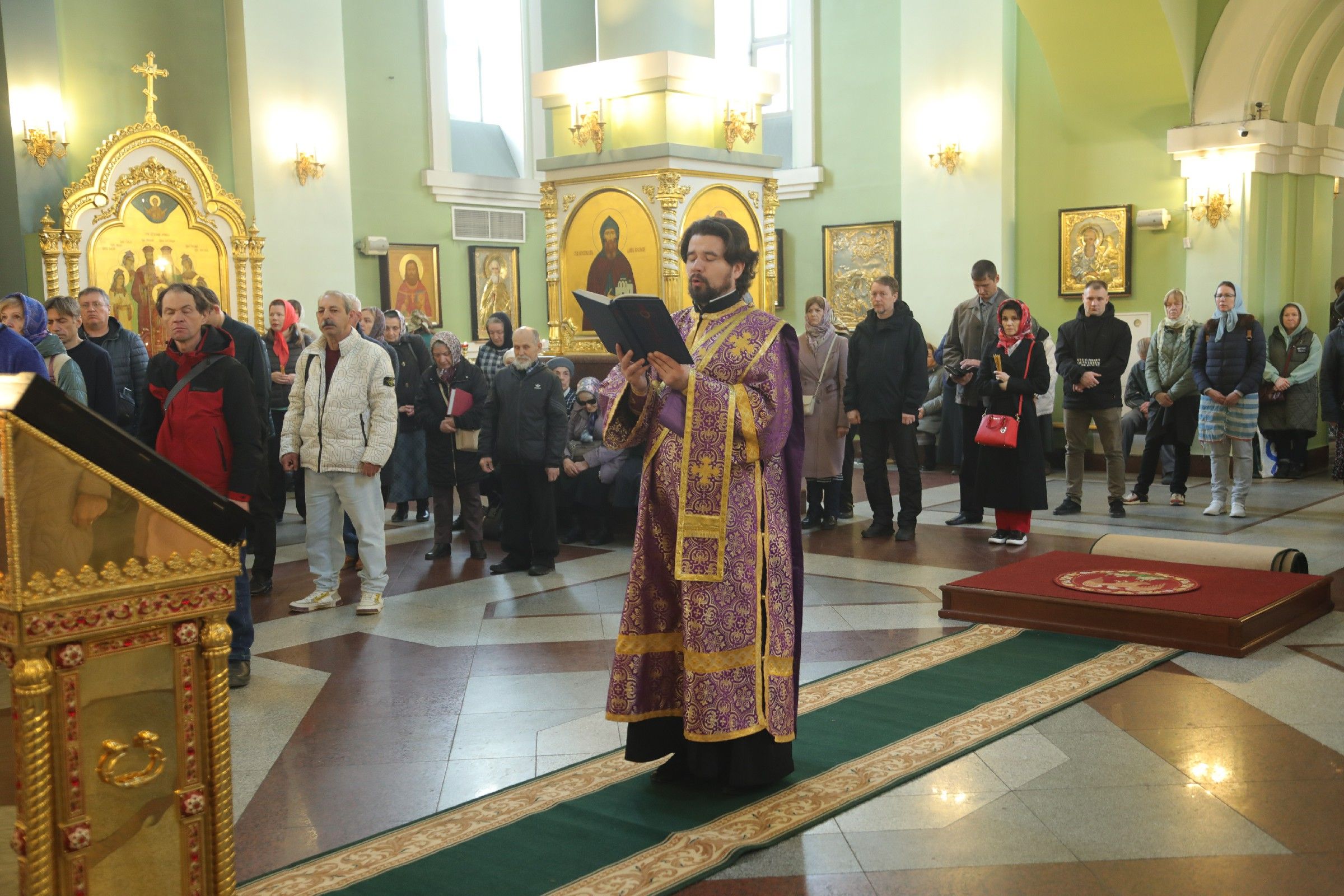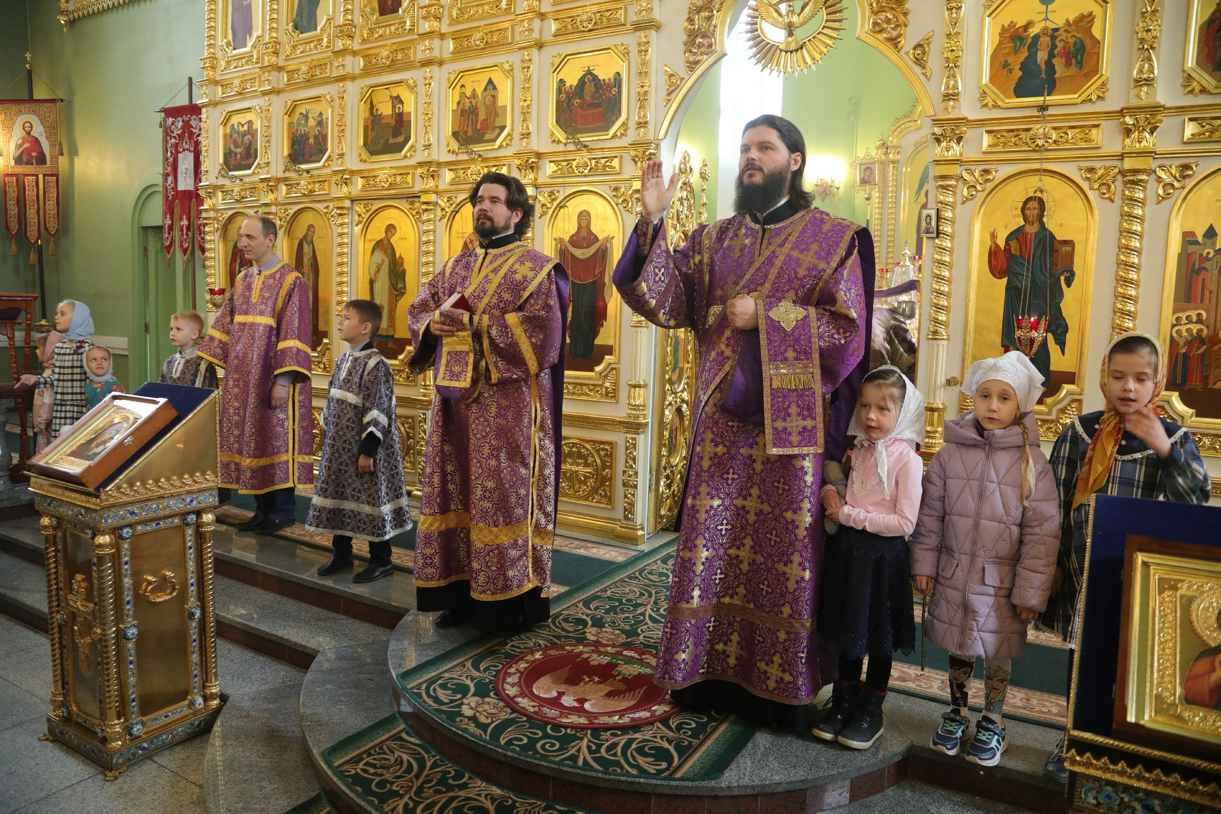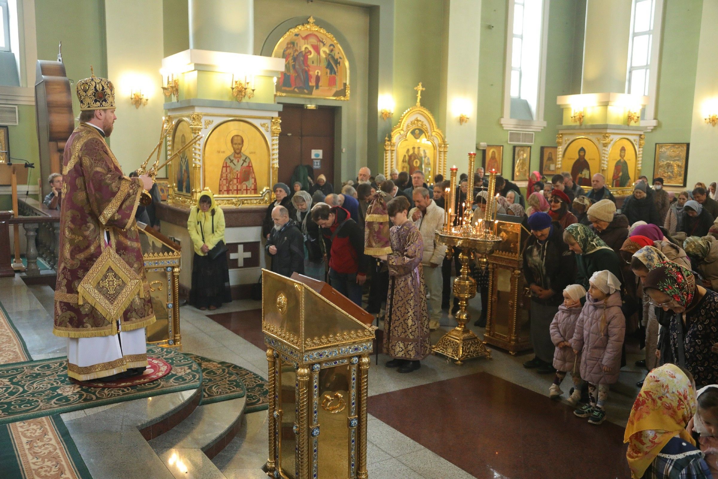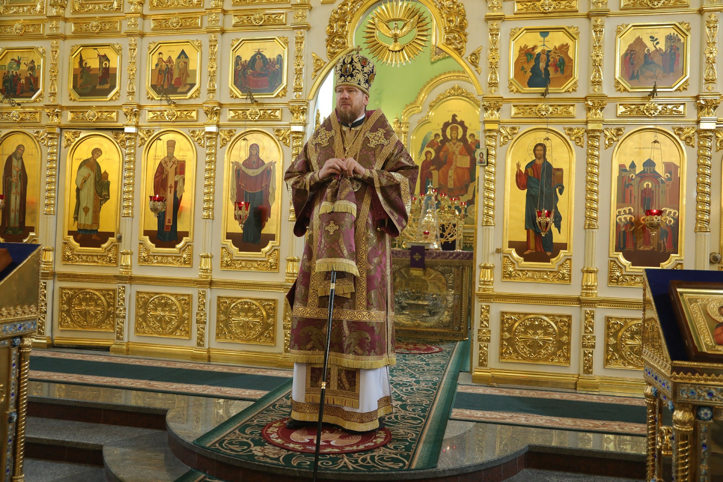Его Высокопреосвященству сослужили: ключарь Покровского собора иерей Владимир Плотников, протоиерей Игорь Шевчук, иерей Максим Точуков, иерей Виктор Архипов, ответственный за организацию архиерейских богослужений иерей Дионисий Ищенко.