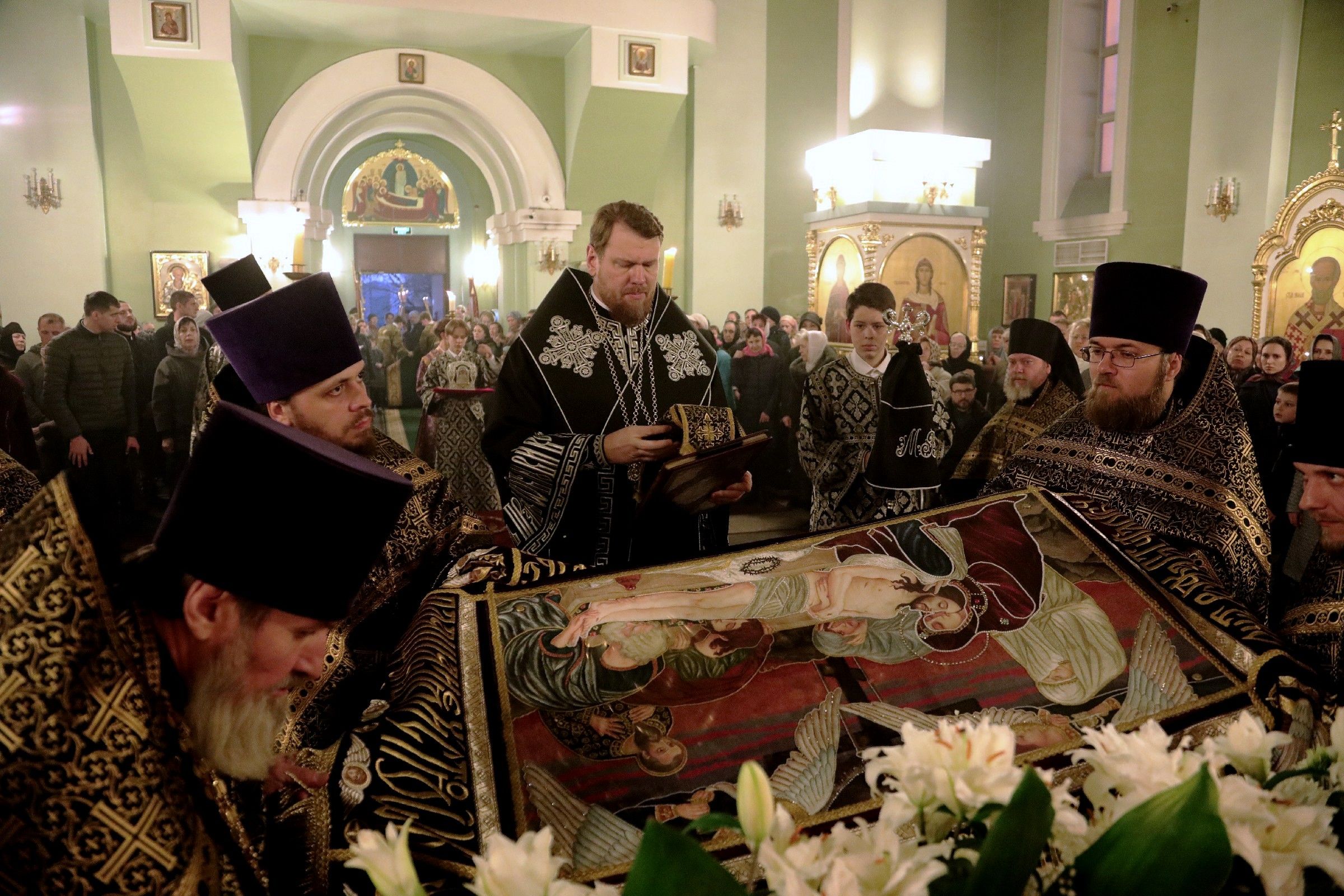 В завершение богослужения было совершено поклонение и целование Плащаницы.