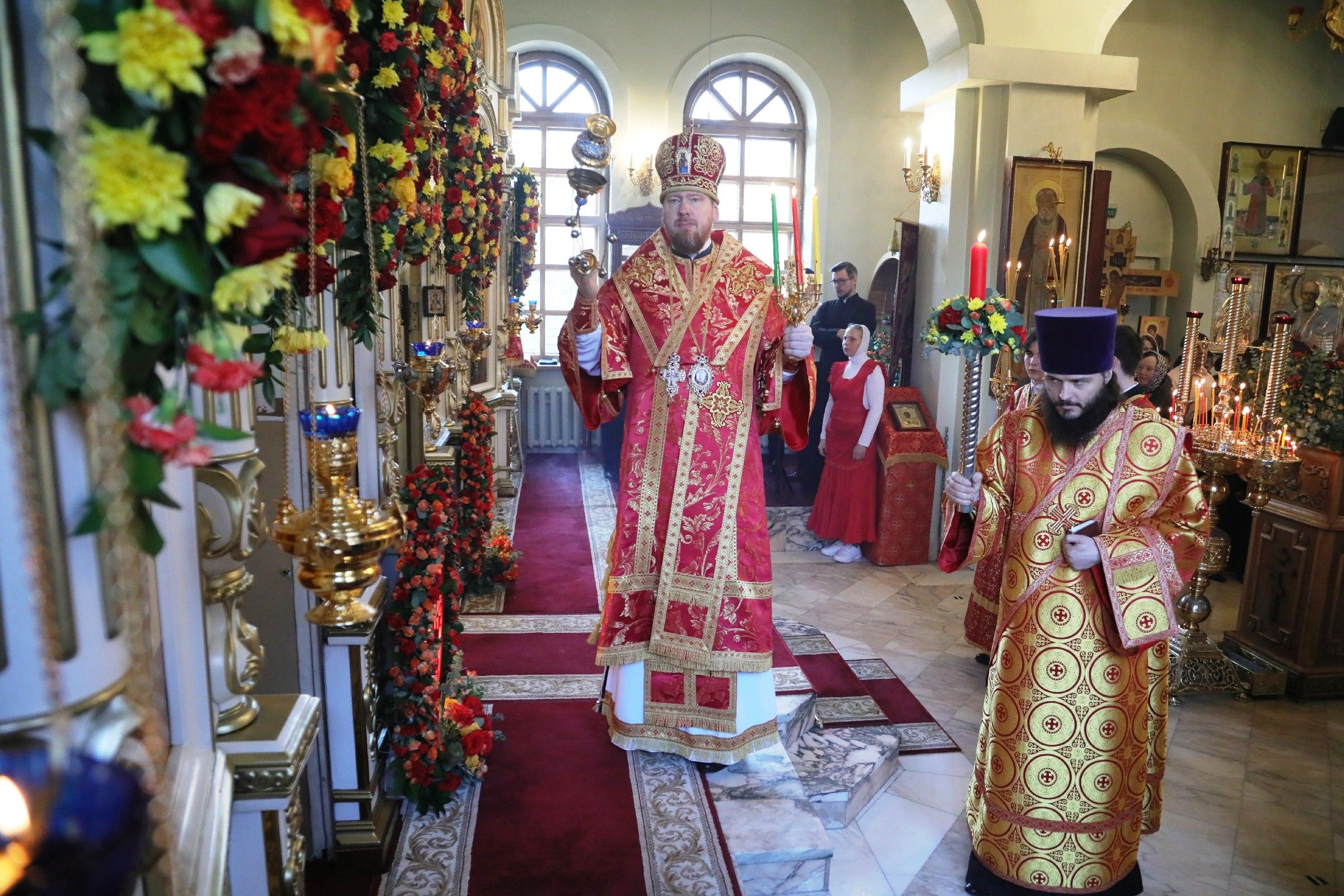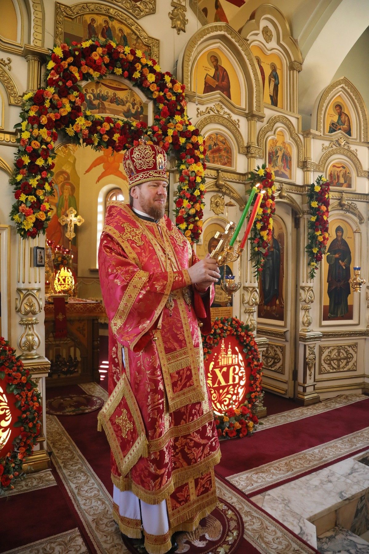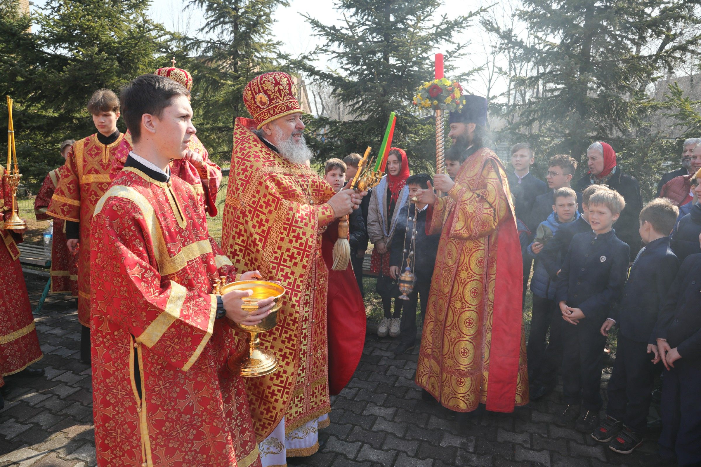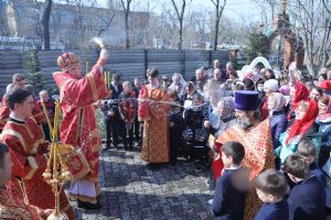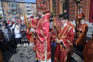 Перед началом литургии состоялась торжественная встреча Благодатного огня, прибывшего из Иерусалимского храма Воскресения Христова.