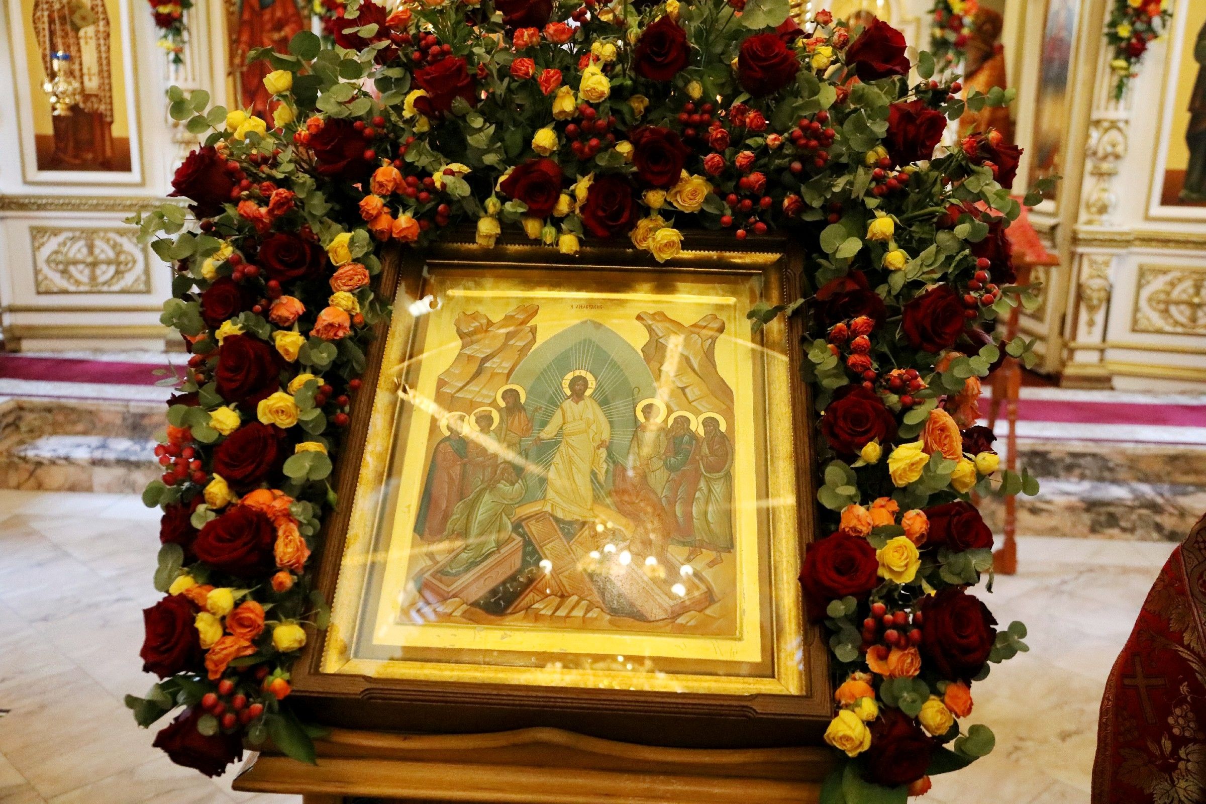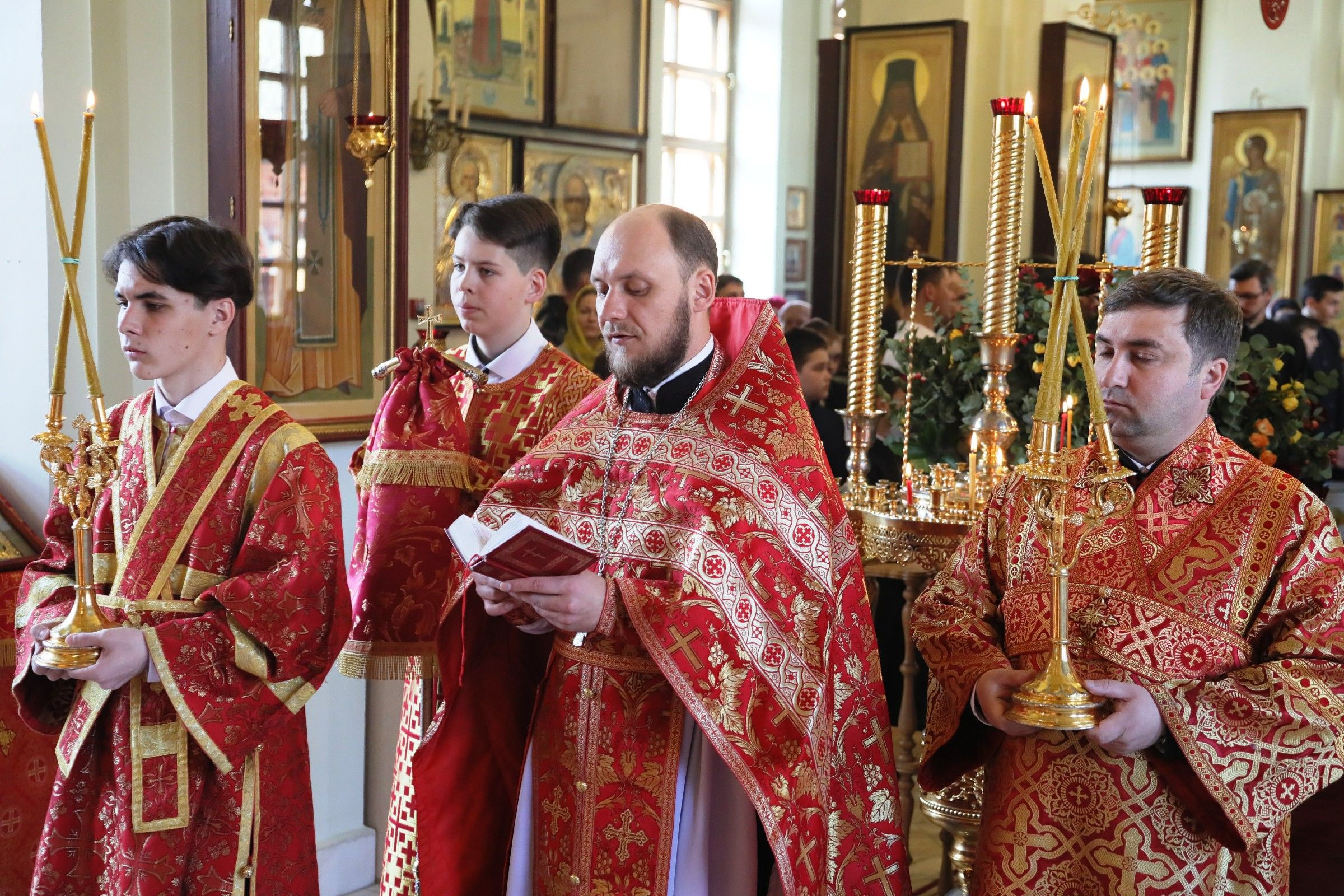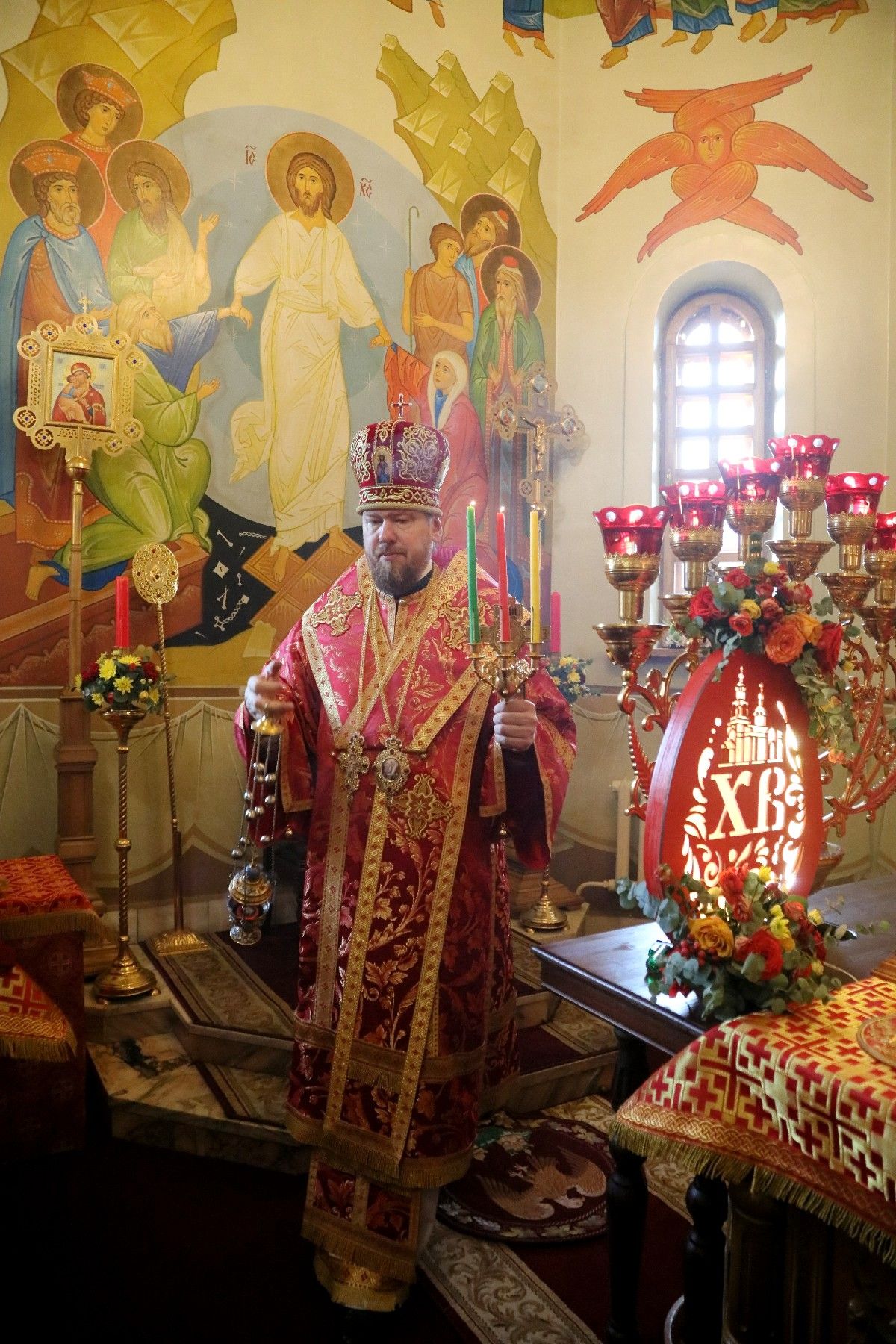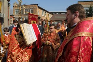 Перед началом литургии состоялась торжественная встреча Благодатного огня, прибывшего из Иерусалимского храма Воскресения Христова.