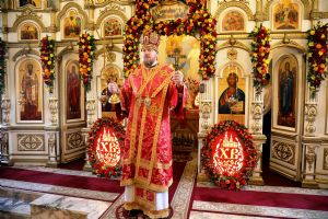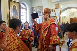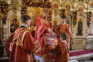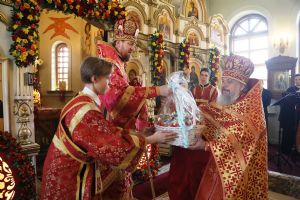 Его Высокопреосвященству сослужили: секретарь епархии протоиерей Игорь Талько; иерей Николай Манукян; иерей Илия Талько; ответственный за организацию архиерейских богослужений иерей Дионисий Ищенко.