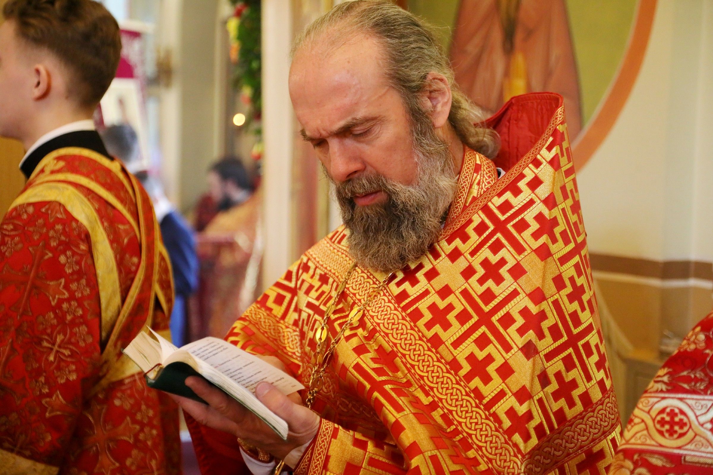 На малом входе глава Приморской митрополии совершил награждение иерея Константина Талько. Во внимание к усердным трудам во славу Святой Церкви к празднику Святой Пасхи он удостоен права ношения камилавки.