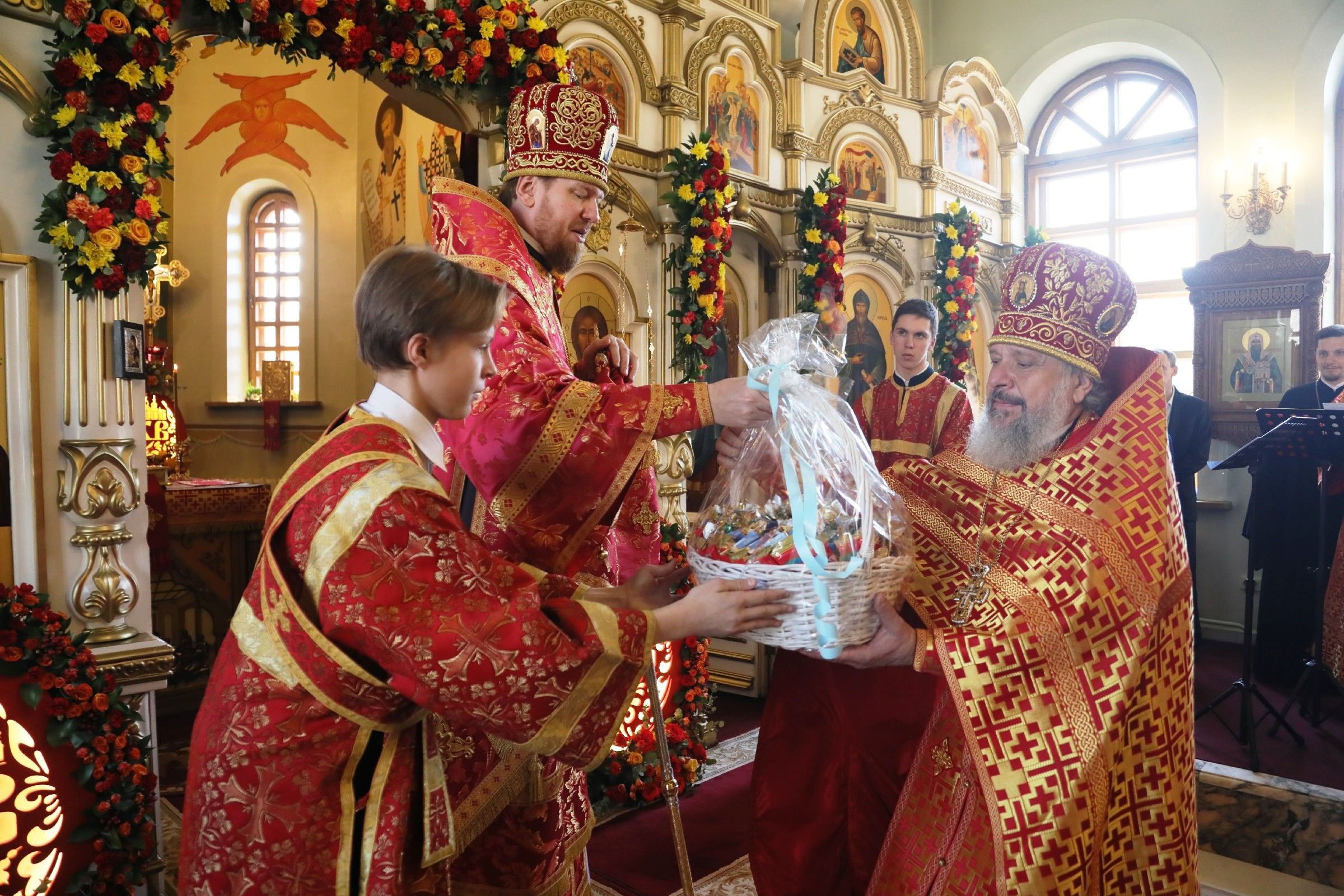 Затем глава Приморской митрополии подарил воспитанникам православной гимназии корзину со сладостями.