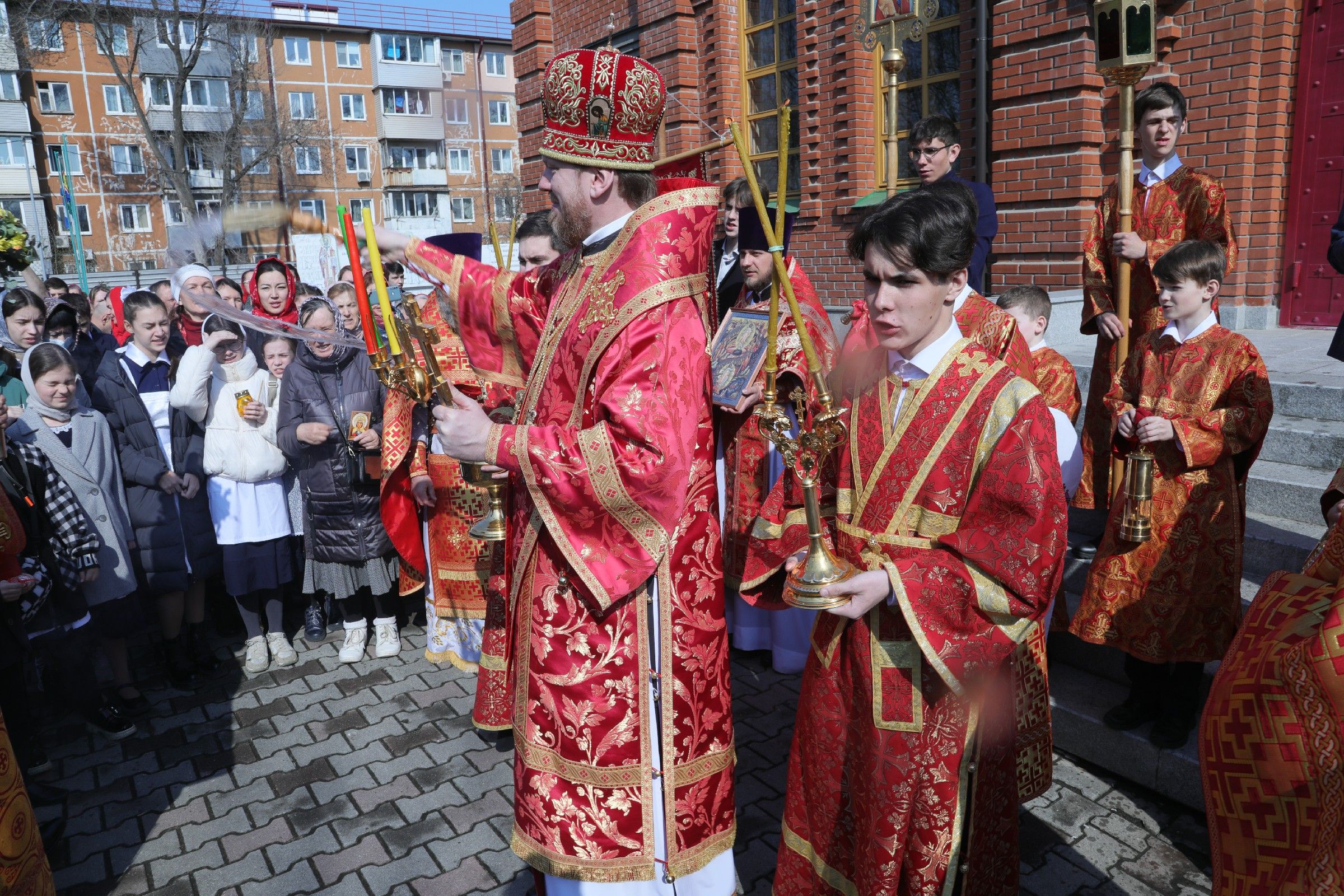 По заамвонной молитве глава Приморской митрополии возглавил Пасхальный крестный ход.