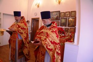 Его Высокопреосвященству сослужили: благочинный Артемовского благочиния, настоятель Богоявленского храма города Артема протоиерей Иоанн Сергеев; настоятель Покровского храма протоиерей Сергий Бирюк; благочинный Надеждинского благочиния Владивостокской епархии протоиерей Евгений Маляр; иерей Алексий Овчинников; ответственный за организацию архиерейских богослужений иерей Дионисий Ищенко.