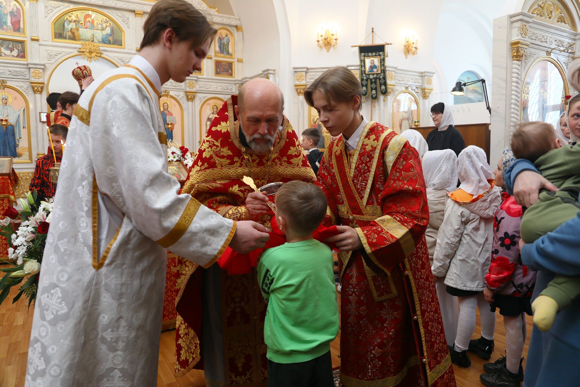 В завершение богослужения архипастырь поздравил прихожан с праздником Светлого Христова Воскресения, причастников — с принятием Святых Христовых Таин.