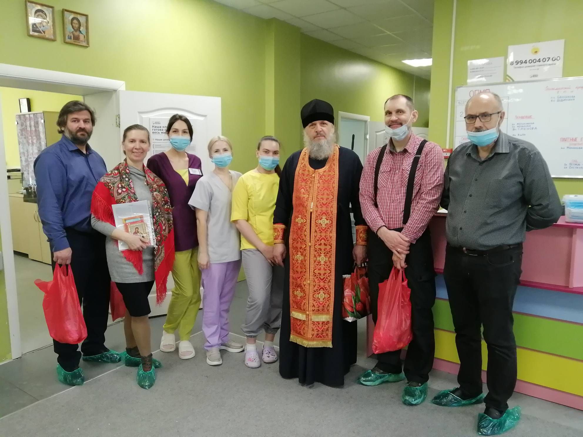Владивосток. 17 апреля 2023 года, в понедельник Светлой седмицы, руководитель отдела по церковной благотворительности и социальному служению Владивостокской епархии протоиерей Александр Талько с добровольцами Службы «Милосердие» поздравили со Светлым Христовым Воскресением пациентов и персонал ВКБ № 4.