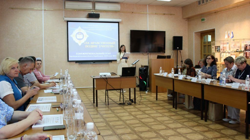 Биробиджан. 15 июня 2023 года завершился второй (межрегиональный) этап XVIII Всероссийского конкурса в области педагогики воспитания и работы с детьми и молодёжью до 20 лет «За нравственный подвиг учителя», проходивший в Еврейской автономной области, 14-15 июня.