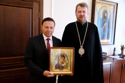 Владивосток. В епархиальном управлении состоялась встреча митрополита Владивостокского и Приморского Владимира и сенатора Российской Федерации — представителя от исполнительного органа государственной власти Приморского края А. И. Ролика.