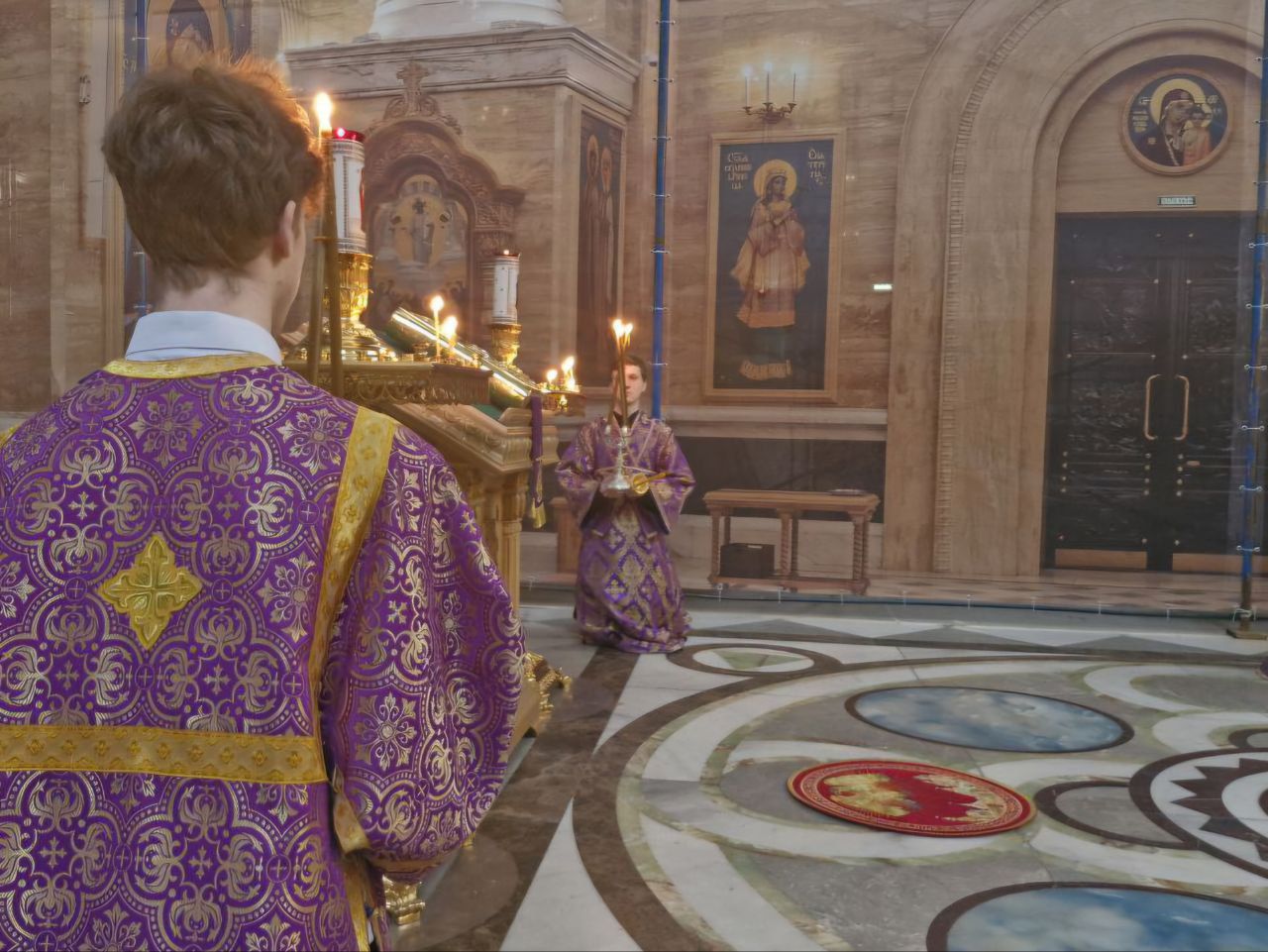 Божественные песнопения исполнил хор Спасо-Преображенского собора под руководством регента Дарьи Богатырёвой.