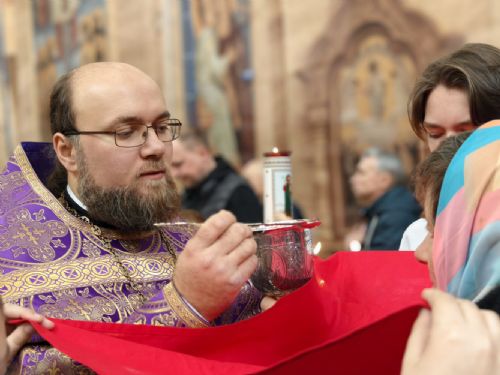 По заамвонной молитве митрополит Павел поздравил причастиников с принятием Святых Христовых Тайн и обратился к прихожанам храма с проповедью.