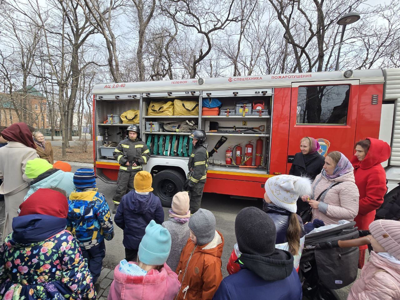 30 марта в храме Покрова Пресвятой Богородицы г.Владивостока прошло важное и познавательное мероприятие для прихожан и воспитанников воскресной школы. 1-я пожарно-спасательная часть организовала увлекательную беседу о правилах безопасности, а также продемонстрировала настоящую пожарную технику.
