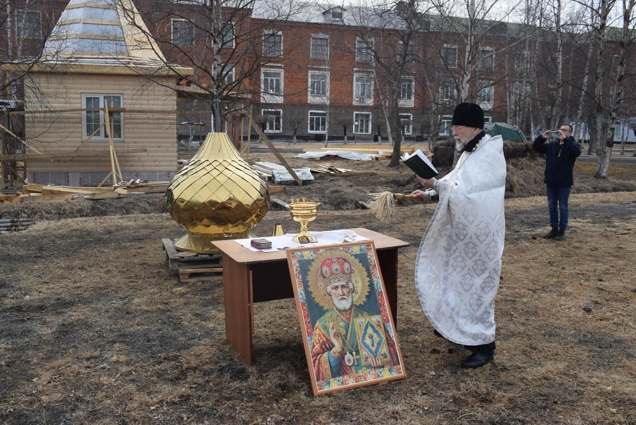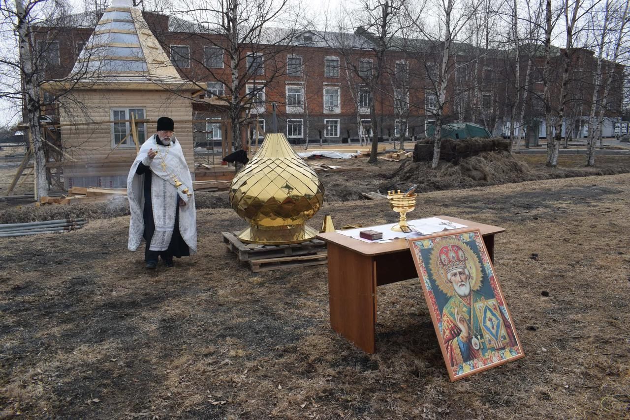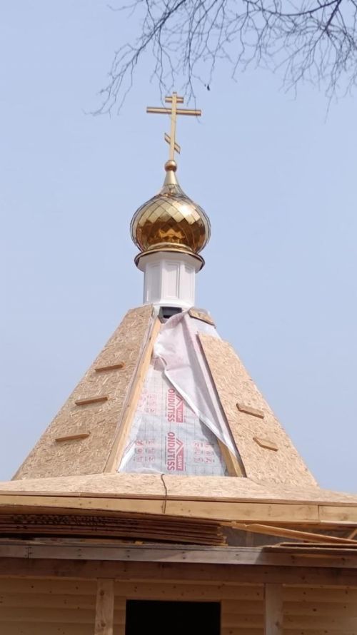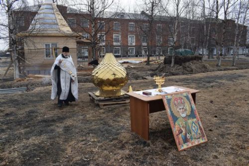 В пос. Угловое освятили крест и купол строящейся часовни