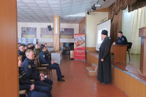Накануне обряда освящения о. Сергий Бирюк провёл с военнослужащими части беседу на тему служения Отечеству.
