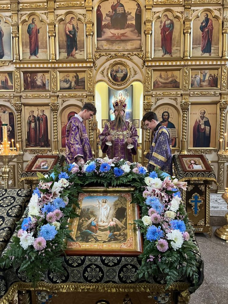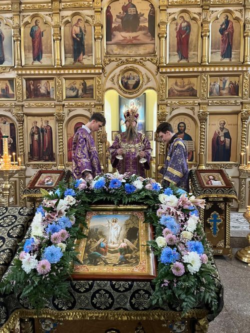В конце службы отец Даниил от лица всех прихожан поблагодарил владыку Павла за совместное богослужение, вручил букет цветов, попросил архипастырского благословения и молитв.