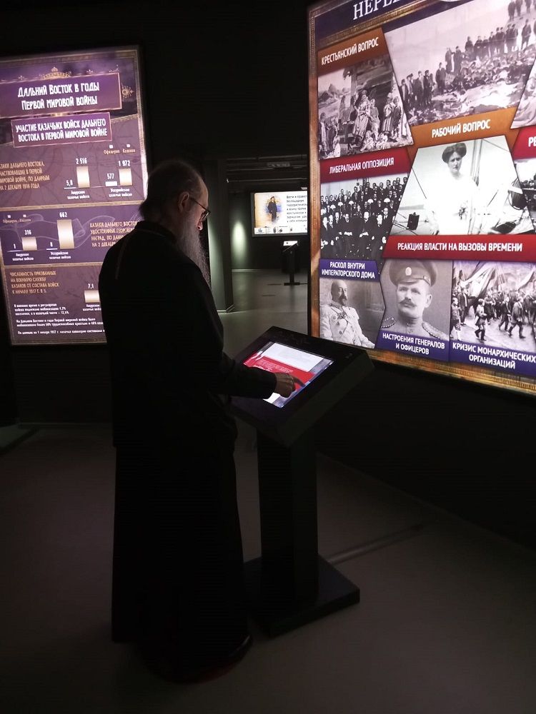 Состоялась экскурсия по мультимедийной экспозиции музея, затронувшая обзор истории российского государства от 1914 до 1920-х годов – времени, когда жил и трудился патриарх Тихон. После чего слушателям был представлен доклад с презентацией о жизни святителя Тихона.