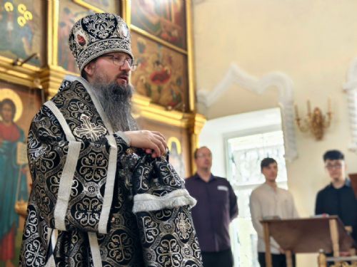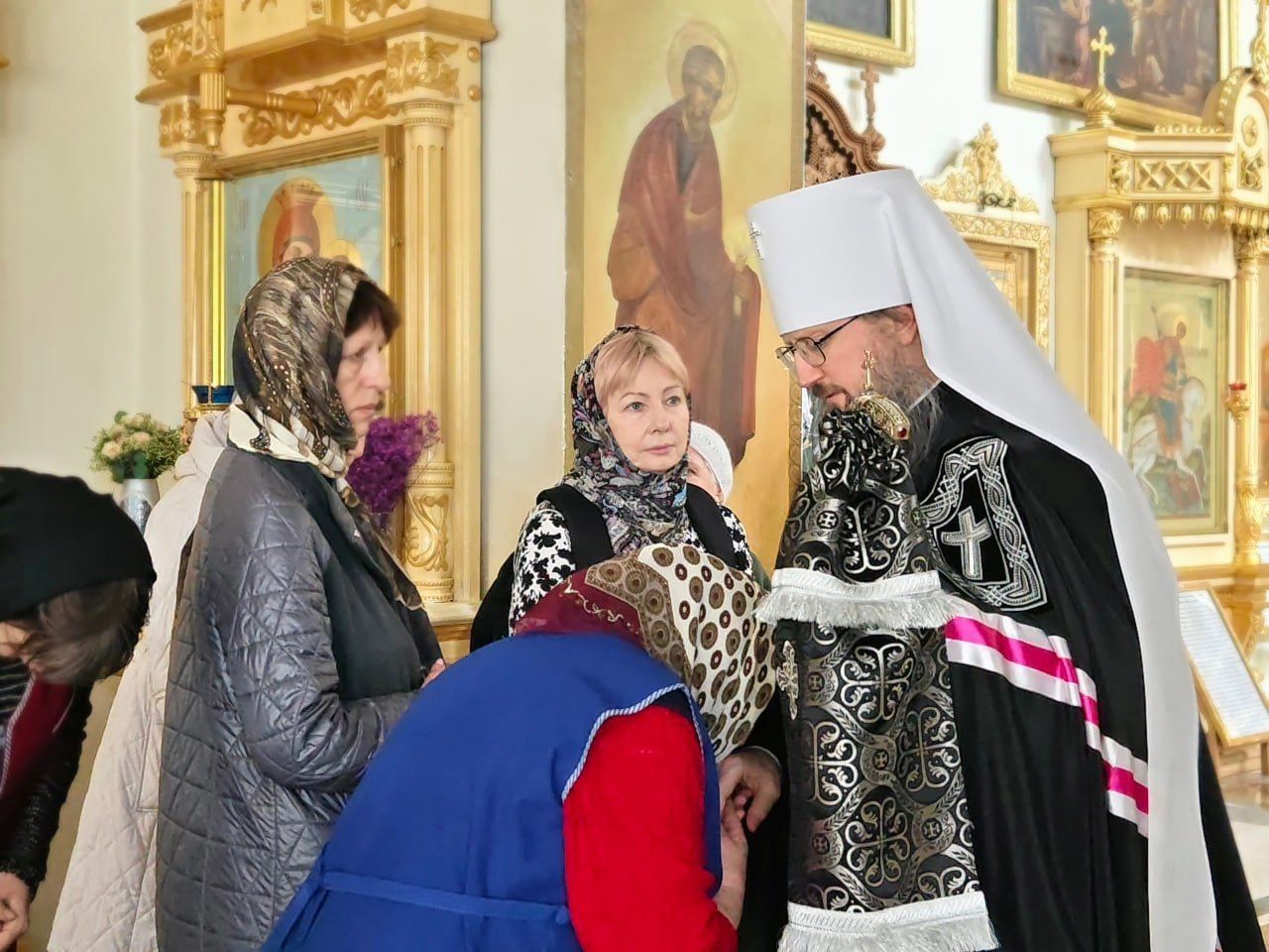 По окончании литургии отец Михаил поблагодарил владыку за совместное богослужение, вручил букет цветов, попросил архипастырского благословения и святых молитв.