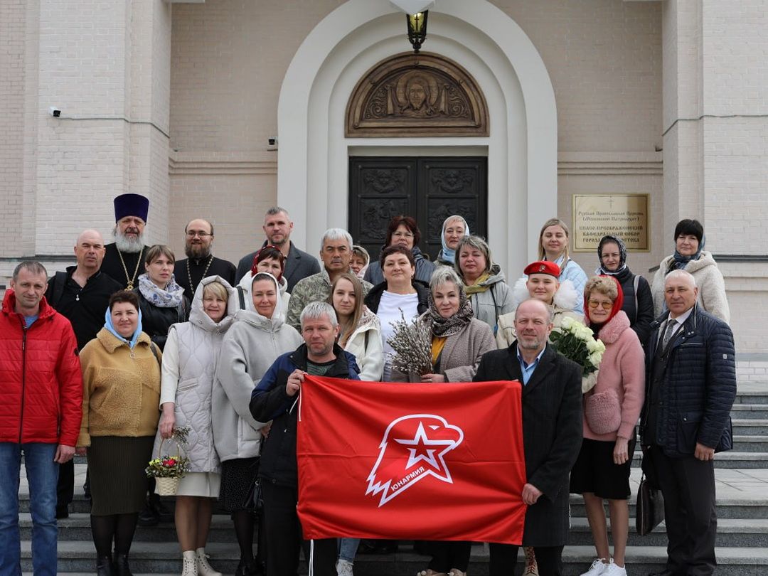 Встречу с представителями Юнармии открывала экскурсия по Свято-Преображенскому собору. Митрофорный протоиерей Игорь Талько рассказывал о его создании и о сложностях возведения.