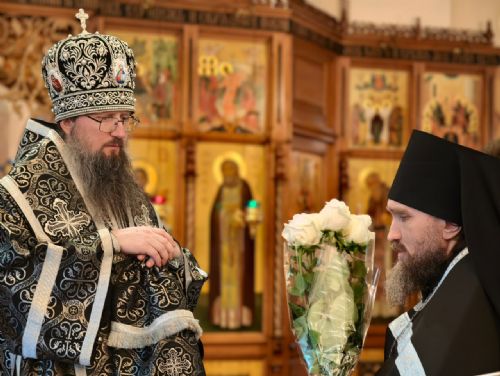 По окончании богослужения игумен Климент выразил благодарность владыке за посещение обители и совместную молитву и преподнёс архипастырю букет цветов.