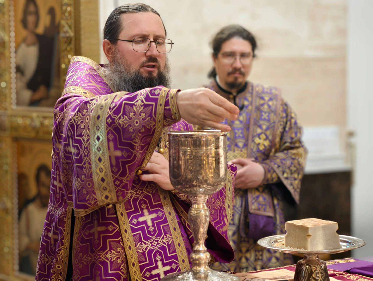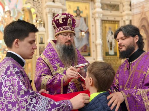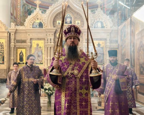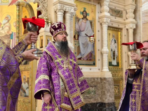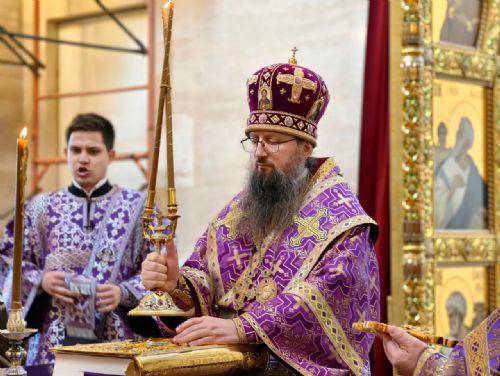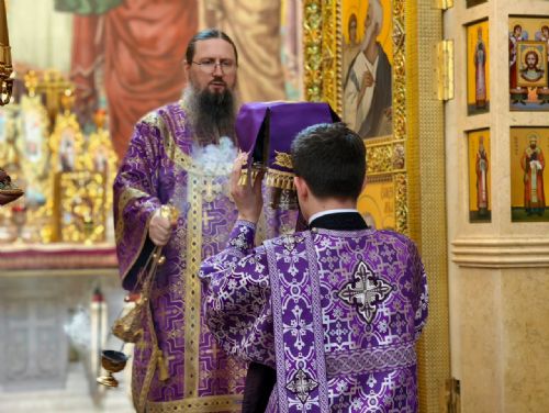 Его Высокопреосвященству сослужили: ключарь собора иерей Максим Точуков, игумен Антоний (Каменчук), иерей Дмитрий Винокуров, иерей Дмитрий Брызгалов, иерей Александр Соколов. Служба состояла из чтения часов, изобразительных и вечерни, совмещенной с Литургией Василия Великого.
