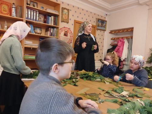 Опытом плетения и материалами поделились волонтёры из музея Истории России. К сожалению, помещение воскресной школы не позволяет изготавливать большие защитные сети, поэтому плетут небольшие сети для шлемов. Дети работают под руководством Юлии Лавровой, мамы одной из воспитанниц школы.