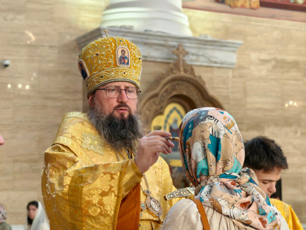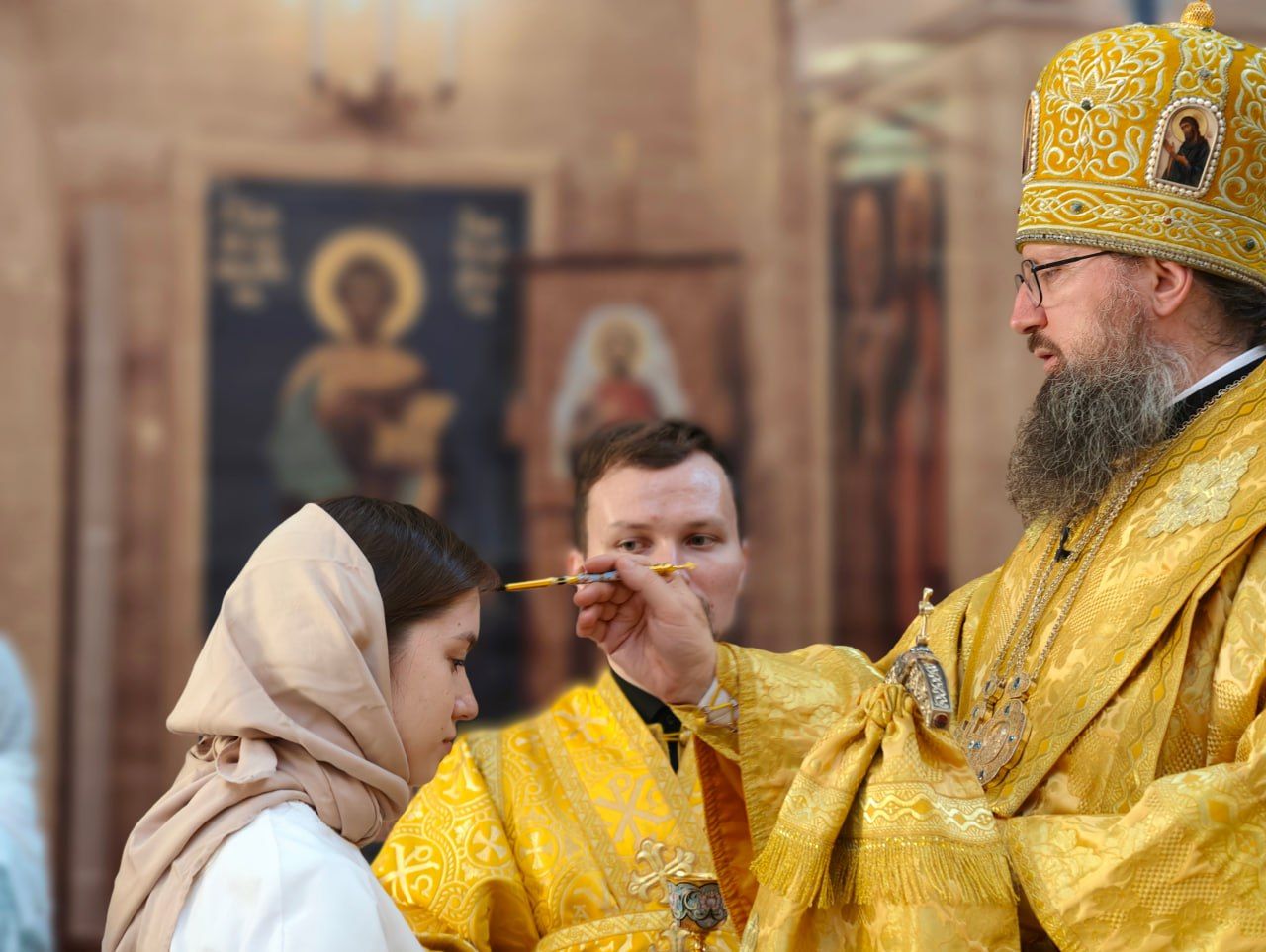 В начале канона правящий архиерей совершил помазание молящихся освященным елеем, символизирующим благодать и милость Божию ко всем, с верой притекающим.