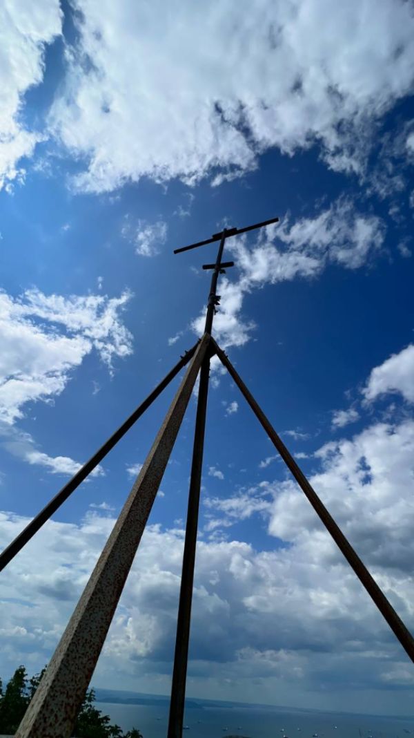 По пути сделали остановку у источника, рядом с которым установлен поклонный крест, прочитали Евангелие и вышли на вершину.