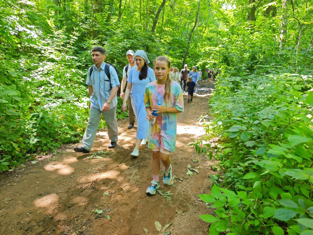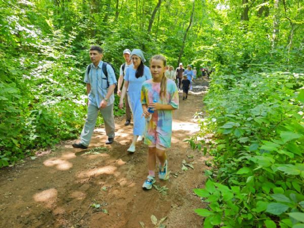 В 14 часов участники крестного хода собрались возле монастырского храма. Игумен Климент (Кривоносов) и иеромонах Серафим (Добритский), благочинные монастыря, насельники, паломники и прихожане обители совершили перед монастырским храмом молебен всем русским святым и выдвинулись по лесной дороге на Гору русских.