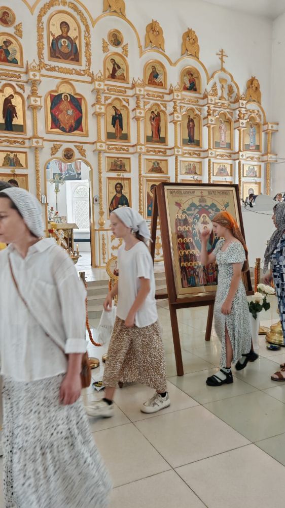 А икона Собор святых покровителей воинства российского отправилась далее по маршруту Крестного хода - в п. Горные Ключи, в Свято-Троицкий мужской монастырь.