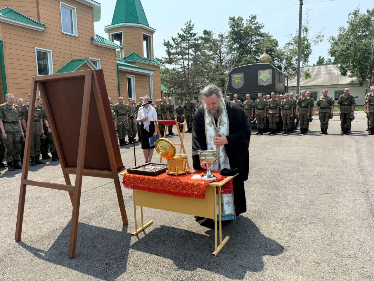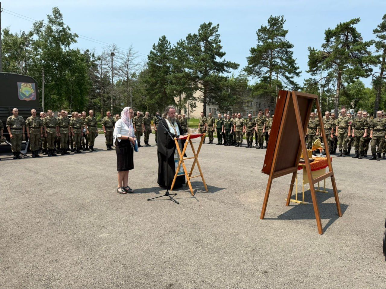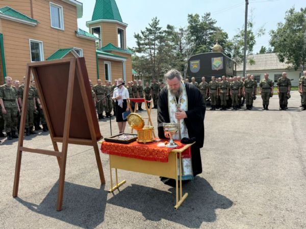 После молебна святой образ был привезен в 16-ю отдельную гвардейскую Хинганскую бригаду радиационной, химической и биологической защиты Восточного военного округа, где с личным составом, желающим помолиться, был отслужен молебен о нашем воинстве.