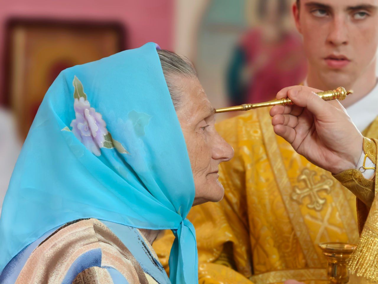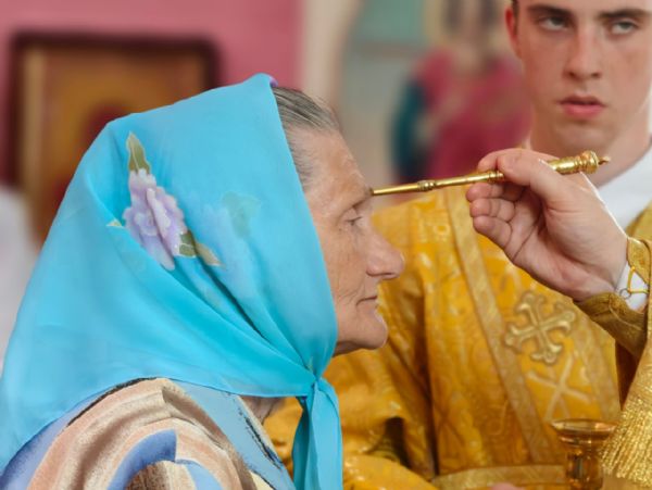 В начале канона все молящиеся были помазаны освященным елеем, который символизирует излияние Божией милости на человека и привлекает Его благодать.