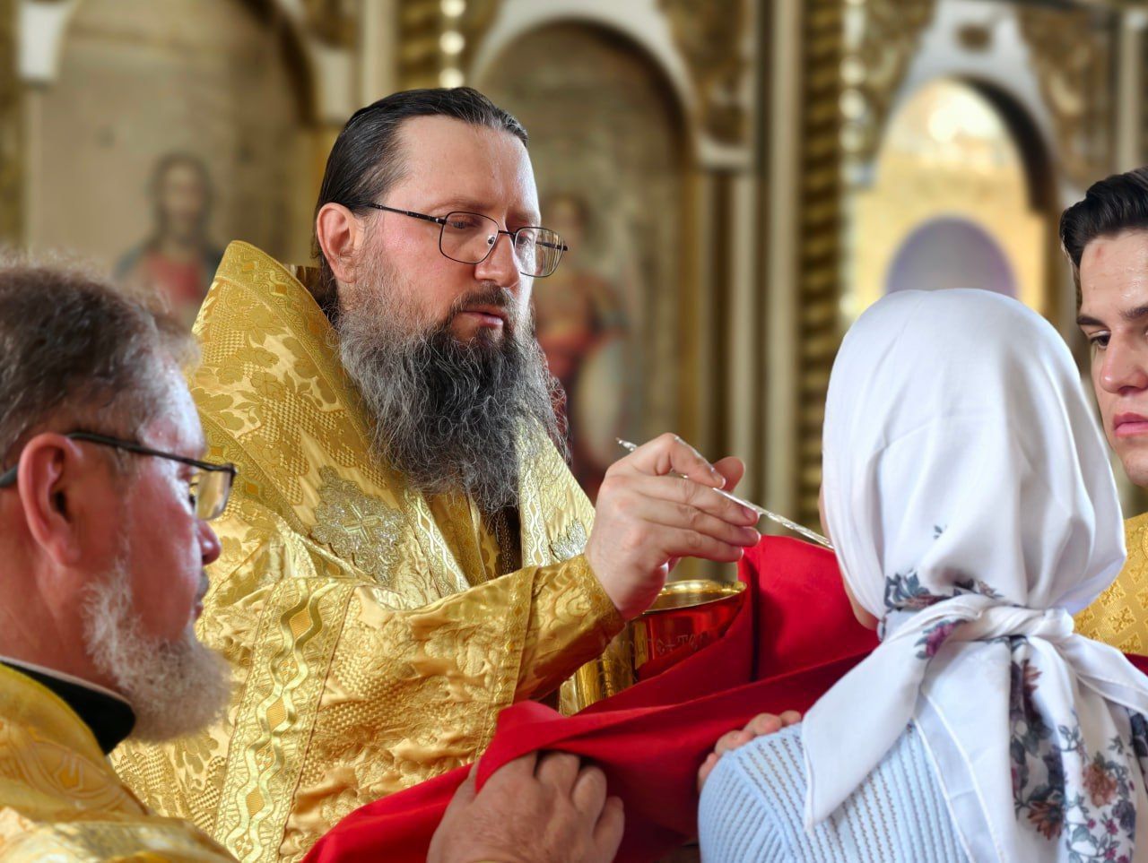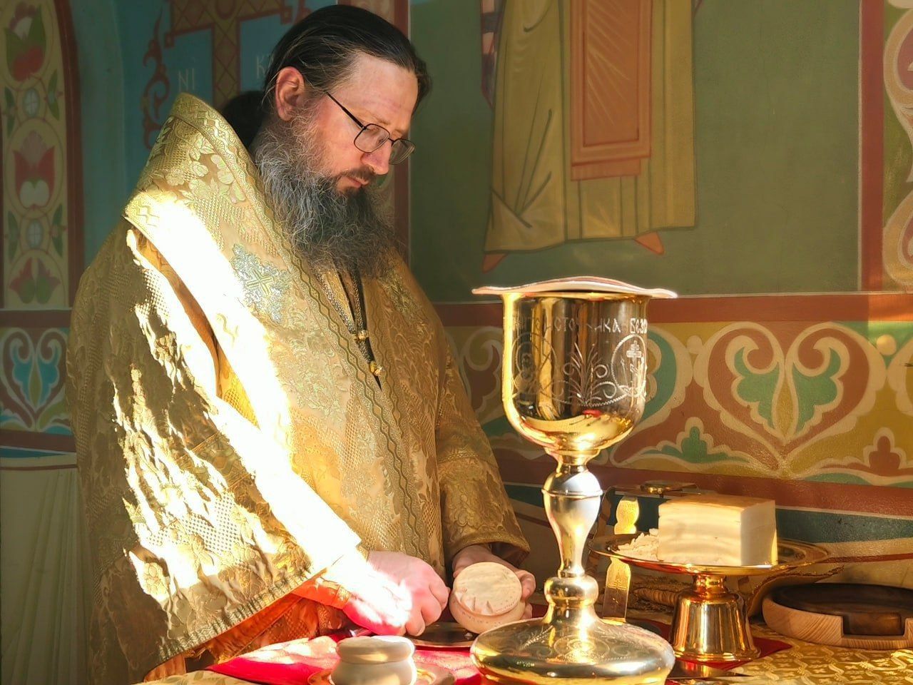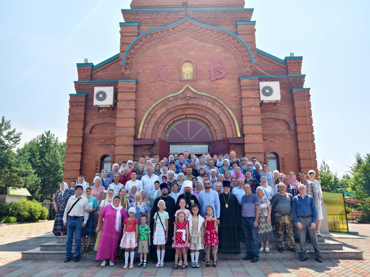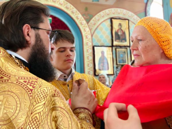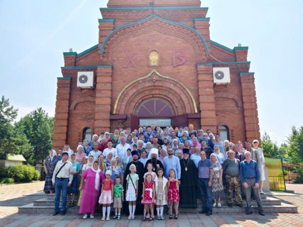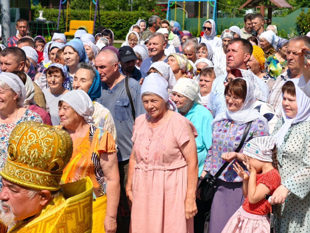 Богослужение, соединяющее Церковь земную и небесную, происходило перед иконой Святых покровителей воинства Российского, прибывшей сюда крестным ходом накануне. После отпуста владыка Павел, духовенство и все присутствовавшие совершили молебен перед святым образом, а затем торжественное молитвенное шествие вокруг храма. На остановках читалось зачало из Евангелия, а верующие окроплялись святой водой.