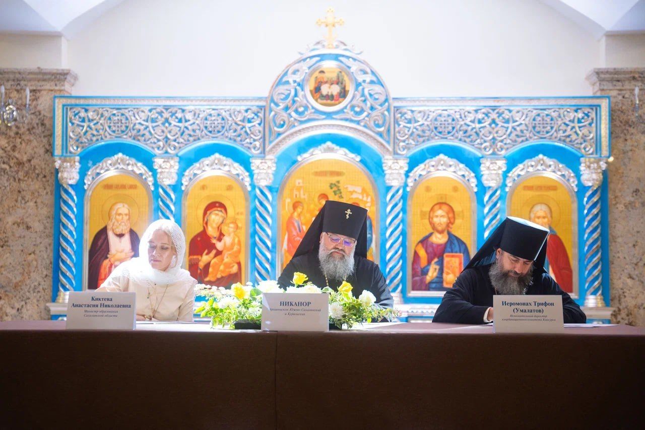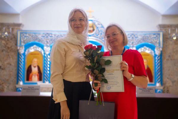 С 24 по 26 июня в Южно-Сахалинске проходил второй межрегиональный этап XX Всероссийского конкурса в области педагогики, работы с детьми и молодежью до 20 лет «За нравственный подвиг учителя». В течение двух дней эксперты из 7 регионов Дальневосточного федерального округа определяли лучшие работы, представленные на второй этап конкурса из регионов Дальнего Востока. Торжественное открытие и закрытие межрегионального этапа конкурса проходило в кафедральном Соборе Рождества Христова в присутствии архиепископа Южно-Сахалинского и Курильского Никанора, министра образования Сахалинской области А.Н. Киктевой и исполнительного директора координационного комитета Конкурса, президента АНО «Поколение», заведующего сектором мероприятий и конкурсов Синодального отдела религиозного образования и катехизации иеромонаха Трифона (Умалатова).