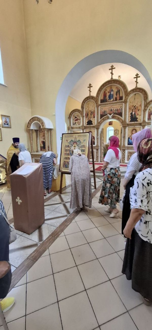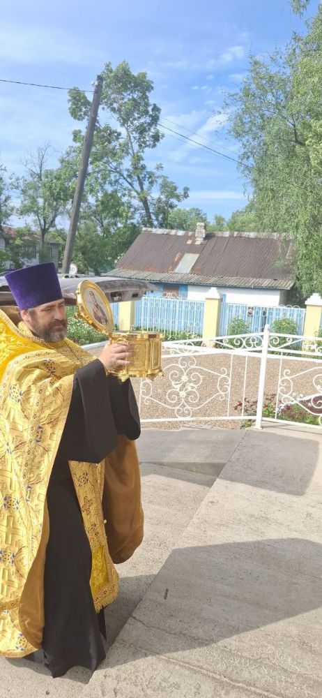 Вечером 3 июля Крестный ход с иконой "Собор святых покровителей воинства российского" и ковчег с мощами святителя Николая, архиепископа Мир Ликийских Чудотворца, встретили в посёлке Пограничном, в храме Успения Пресвятой Богородицы.